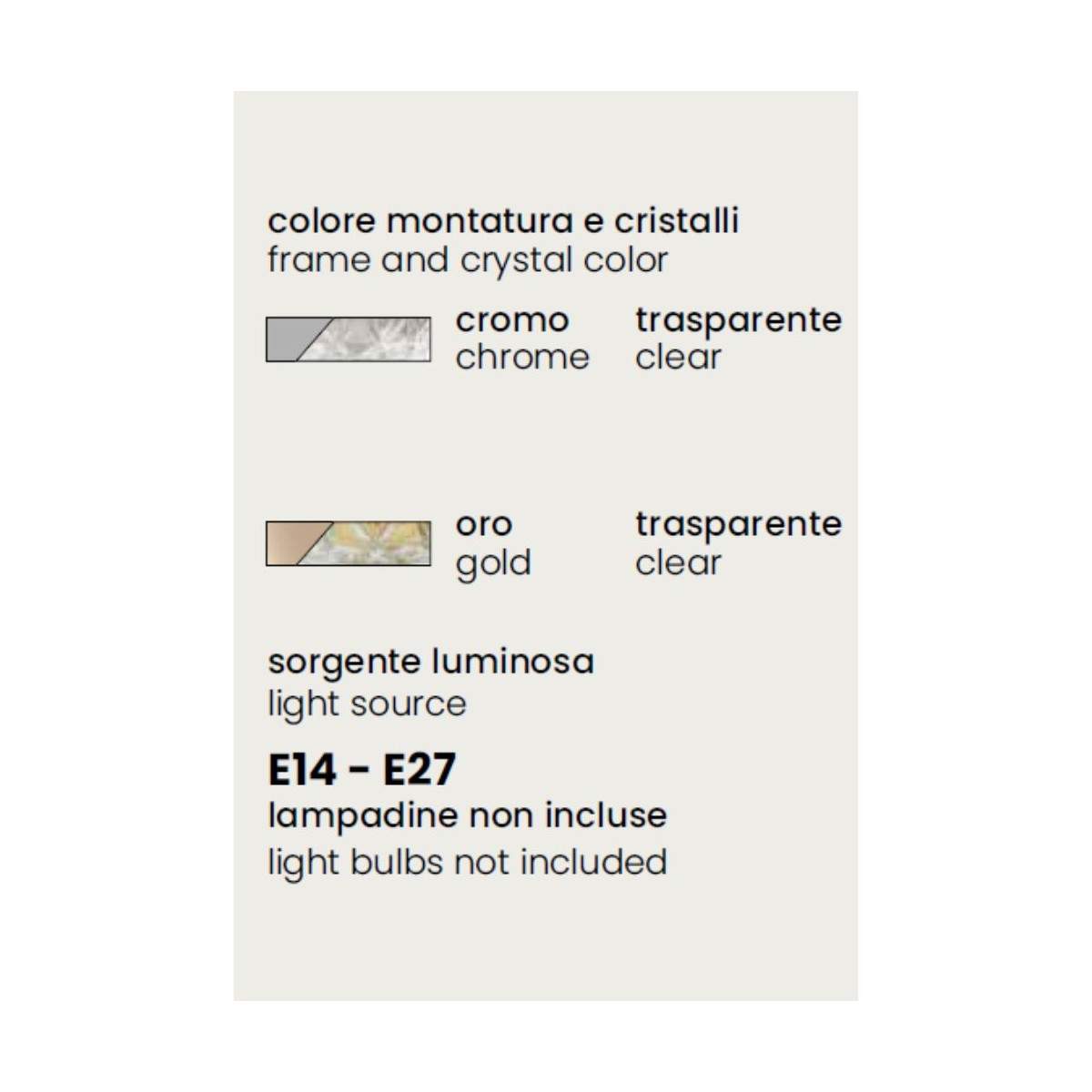 Sorgente luminosa E14 - E27 (lampadine non incluse)