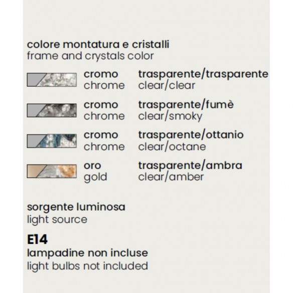 Lampadario DAMASCO con struttura in metallo ed elementi decorativi in cristallo ottico.