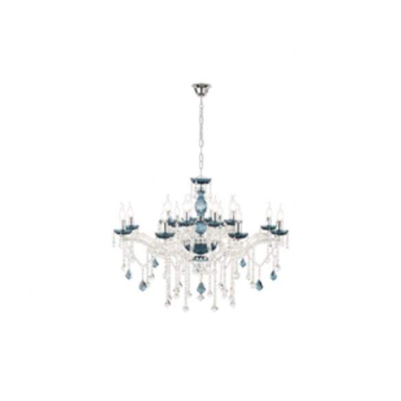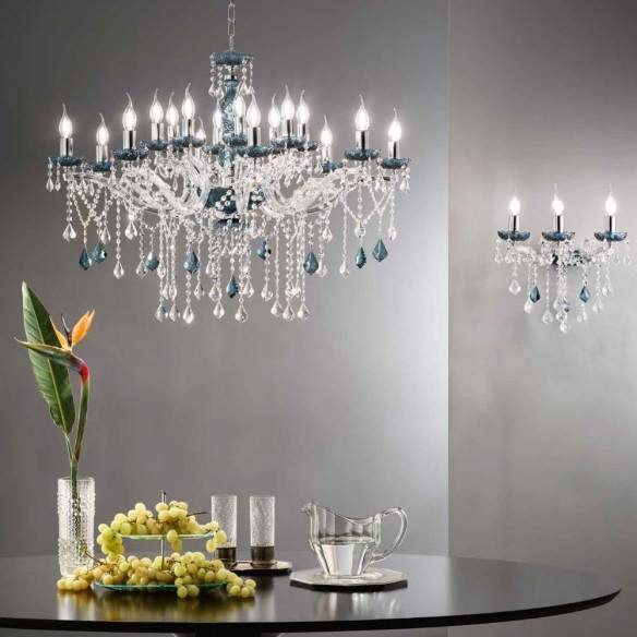 Lampadario DAMASCO con struttura in metallo ed elementi decorativi in cristallo ottico.