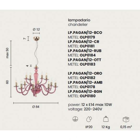 Compatibile con lampadine E14 (max 10W, non incluse) e alimentazione 220–240V, PAGANINI è molto più di un semplice lampadario: è un pezzo d’autore che illumina lo spazio e l’anima, con la grazia di un classico suonato in chiave contemporanea.