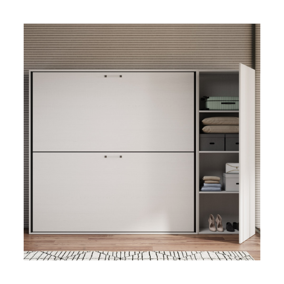 Se cerchi una soluzione salvaspazio elegante e funzionale, il letto a scomparsa Kando H è la scelta perfetta. Unisce la praticità di un doppio letto all’utilità di un armadio integrato, garantendo ordine, comodità e versatilità in un unico mobile dal design raffinato.