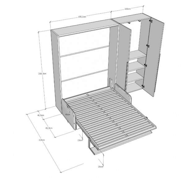 Letto chiuso: L.255,2 x P.123 x H.218,3 cm