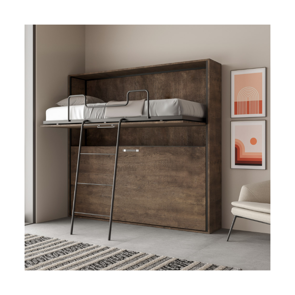 Quando lo spazio è prezioso, scegliere un arredo intelligente può fare la differenza. Il letto a scomparsa orizzontale Kando con due letti singoli a castello è la soluzione perfetta per chi desidera massimizzare ogni centimetro della propria casa, trasformando in pochi istanti una zona giorno in una zona notte accogliente e funzionale.