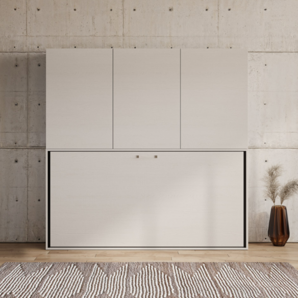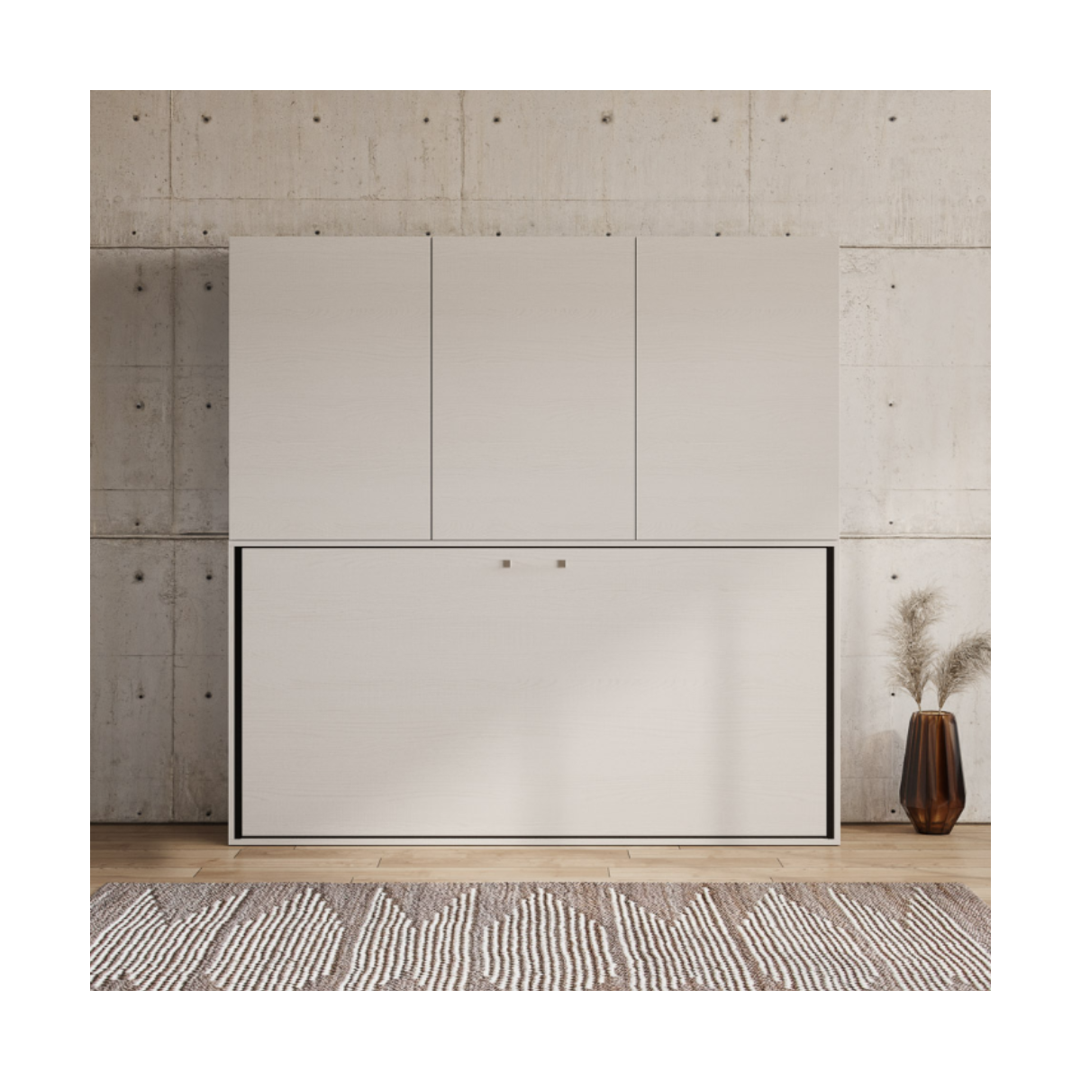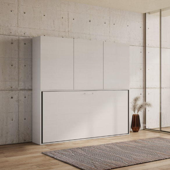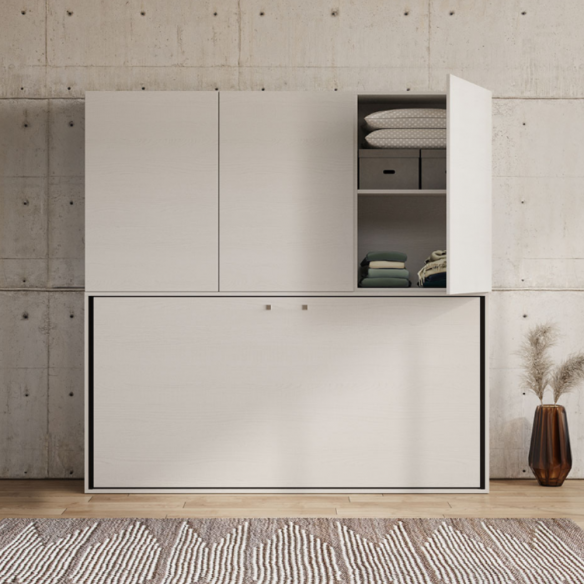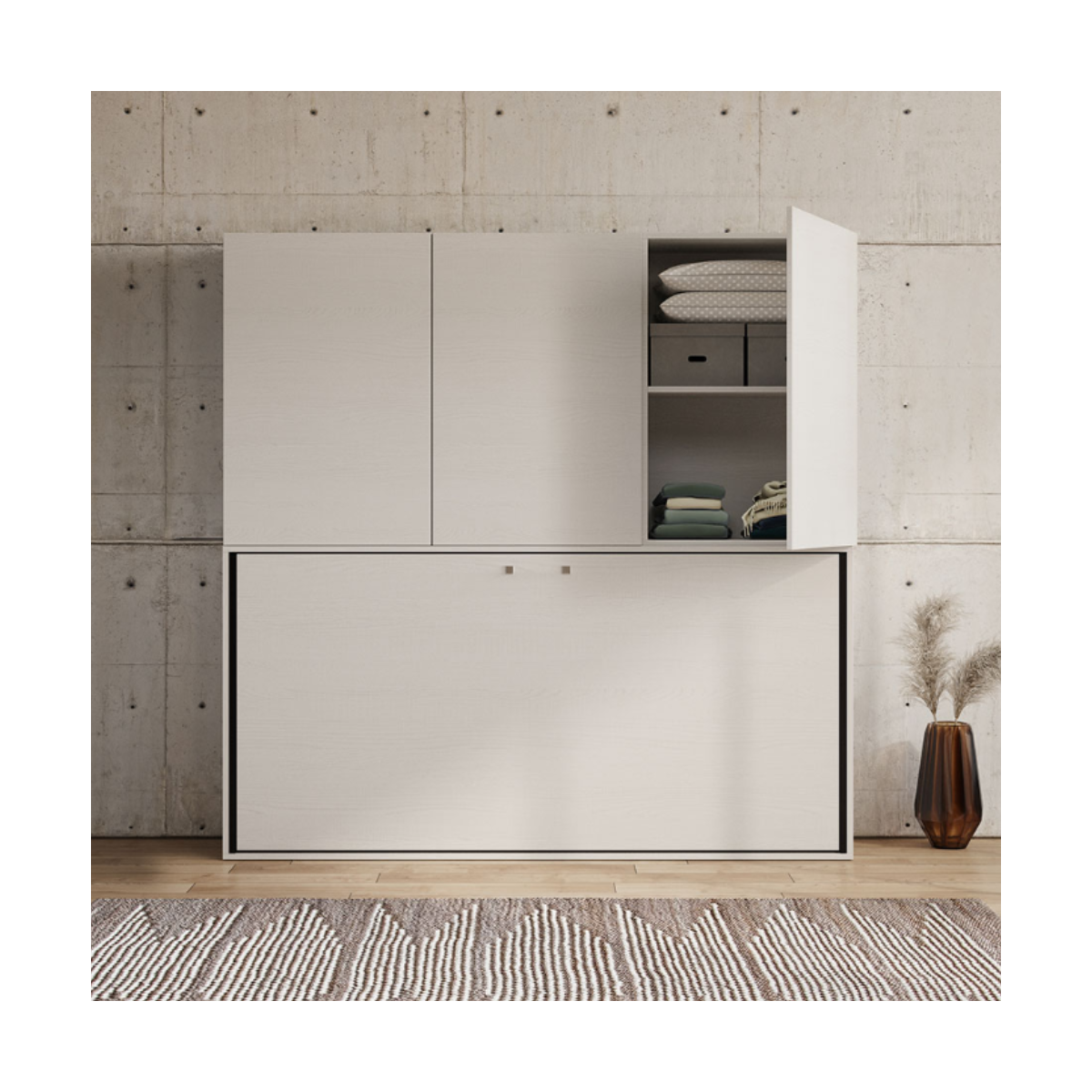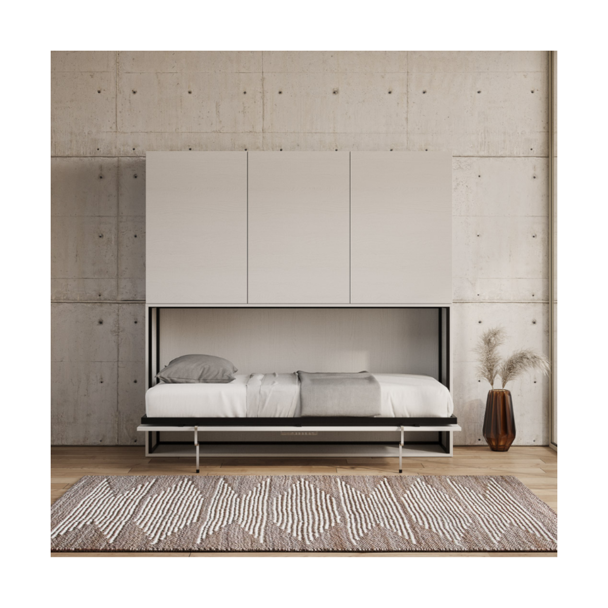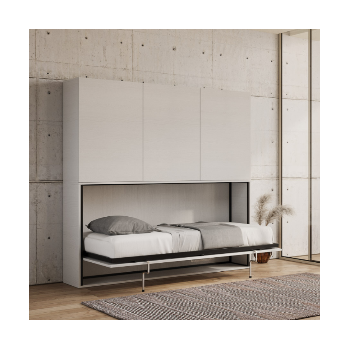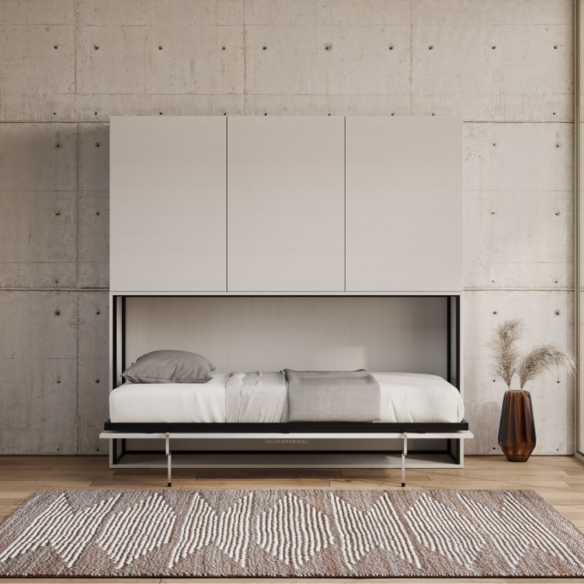 Kando D è una soluzione d’arredo versatile e intelligente, perfetta per chi desidera ottimizzare lo spazio senza rinunciare a comfort e design. Questo letto singolo a scomparsa si integra in una libreria/armadio compatta e funzionale, dotata di tre vani con anta, ognuno provvisto di un ripiano interno. Quando chiuso, il mobile ha una profondità di soli 39,2 cm, riducendo al minimo l’ingombro e trasformandosi in un elegante complemento d’arredo, ideale per monolocali, open space e ambienti multifunzionali. Una volta aperto, il letto offre una superficie stabile e confortevole, garantendo il massimo del relax.