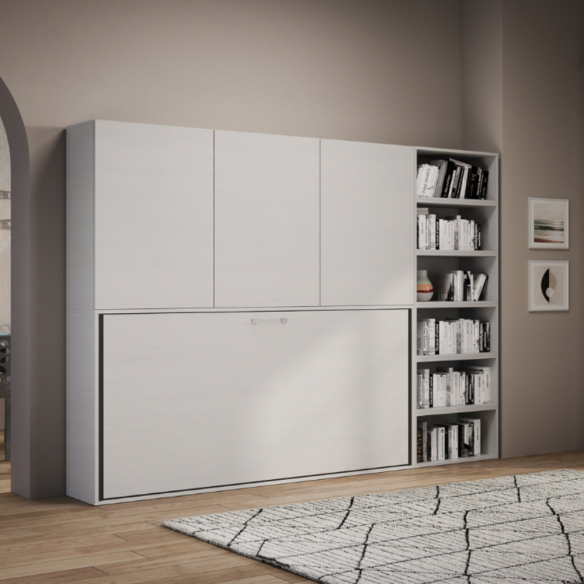 Se sogni di avere un letto comodo senza sacrificare spazio prezioso, Kando G è la soluzione perfetta per te! Questo innovativo letto singolo a scomparsa unisce praticità e design trasformandosi, da chiuso, in un’elegante libreria/armadio con ben nove vani: tre con anta e ripiano interno per custodire oggetti personali e sei aperti per esporre libri, decorazioni o accessori.