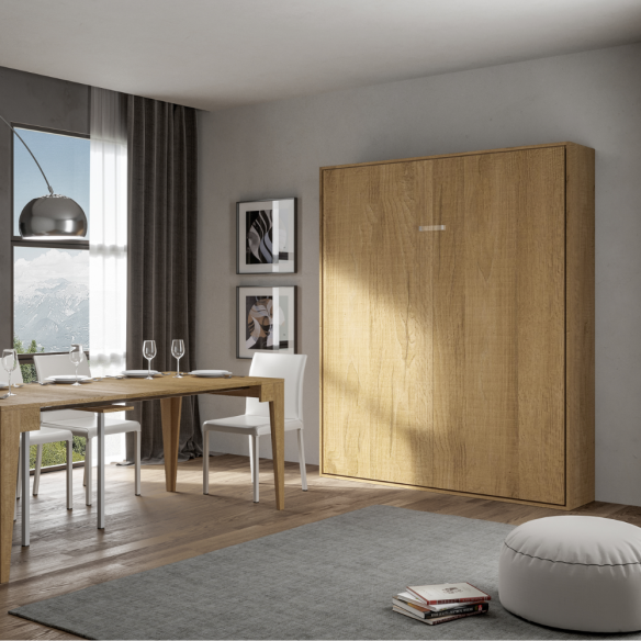 Il letto a scomparsa verticale KENTARO matrimoniale 160 è la perfetta combinazione tra funzionalità e design, pensato per chi desidera ottimizzare al massimo gli spazi senza rinunciare al comfort di un vero letto matrimoniale. Questo modello innovativo permette di trasformare la tua stanza in un ambiente versatile e dinamico, adattandosi perfettamente a monolocali, camere degli ospiti o qualsiasi spazio in cui sia necessario avere un letto pratico ma poco ingombrante durante il giorno.