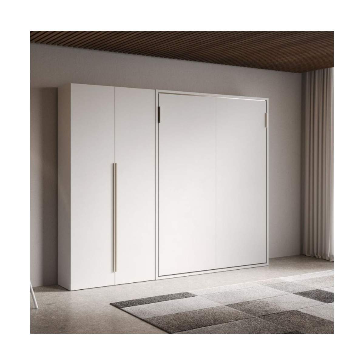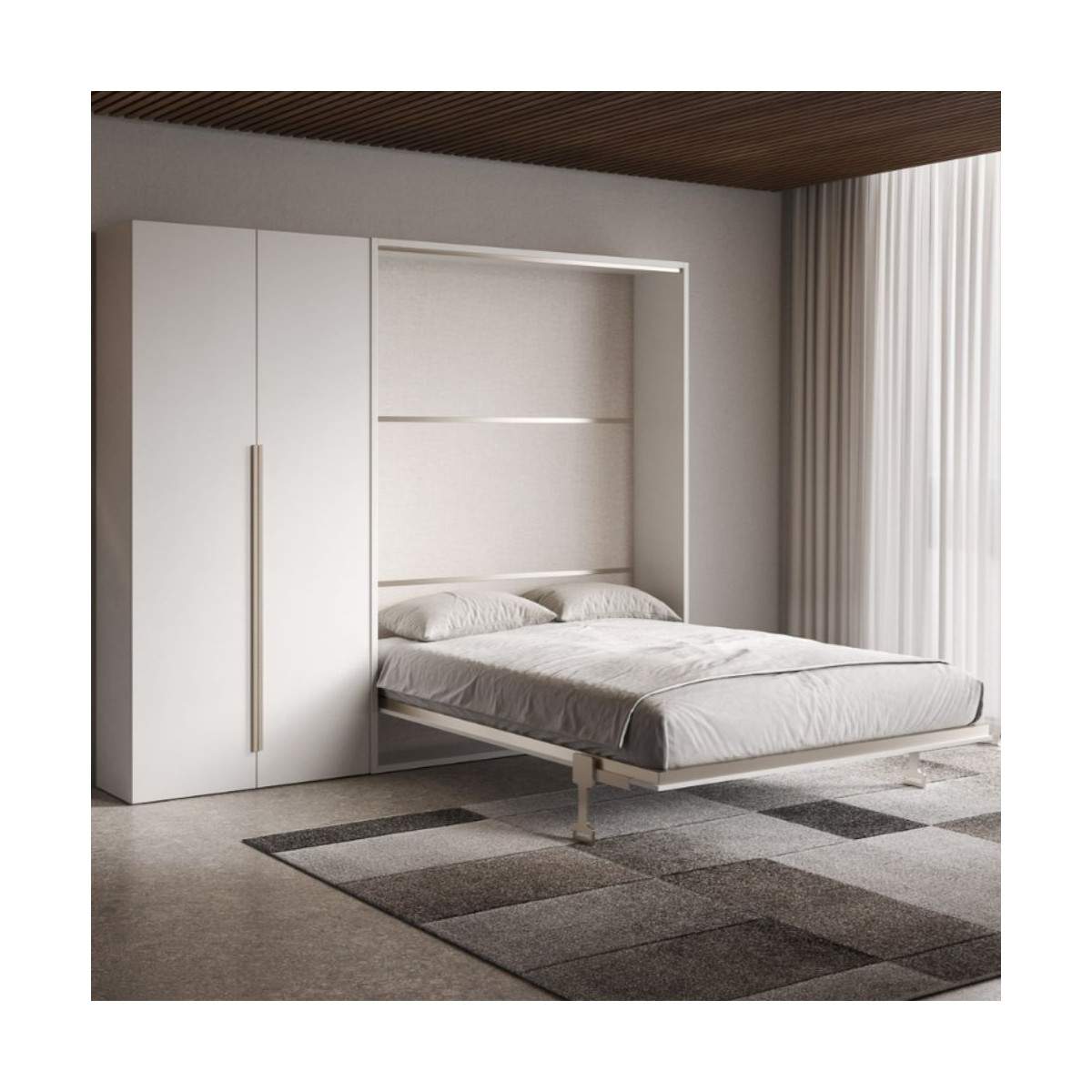 Il letto a scomparsa verticale matrimoniale Versia con armadio a due ante è la soluzione perfetta per chi desidera massimizzare lo spazio abitativo senza rinunciare a design, eleganza e funzionalità.
