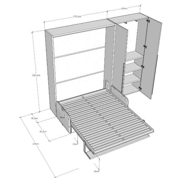 Letto chiuso: L.275,2 x P.123 x H.218,3 cm