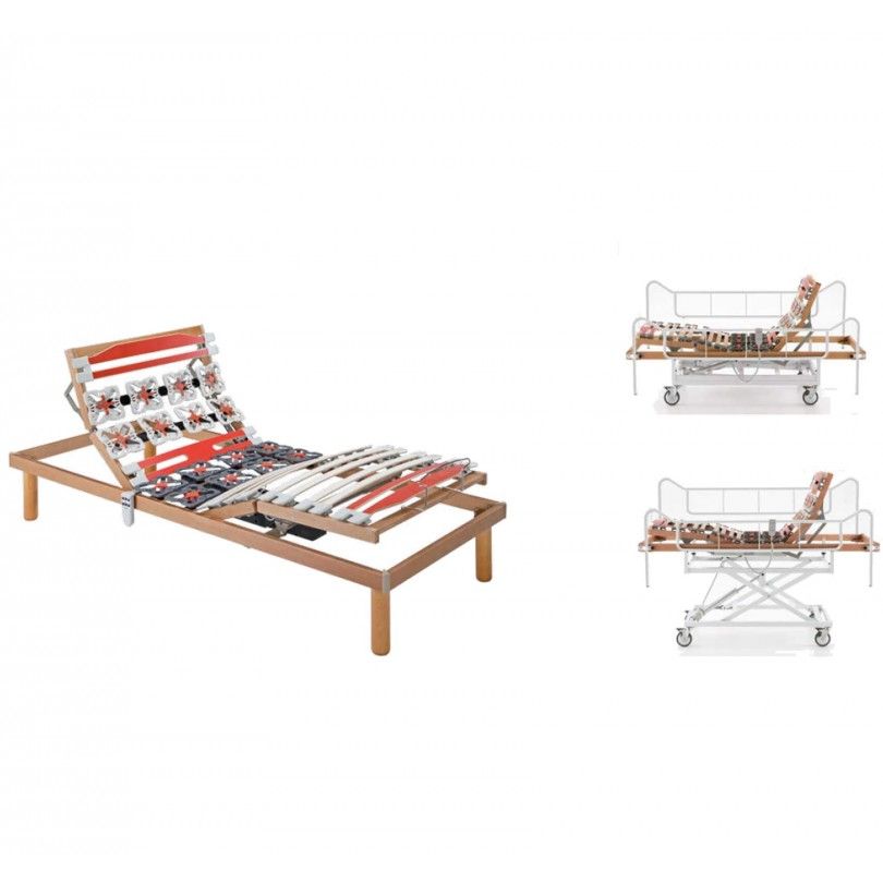 Letto ospedaliero con sistema sollevamento e sponde di sicurezza abbinabile alla rete Simamhealth Elettrica e a tutte le reti Simam con telaio in legno con misure