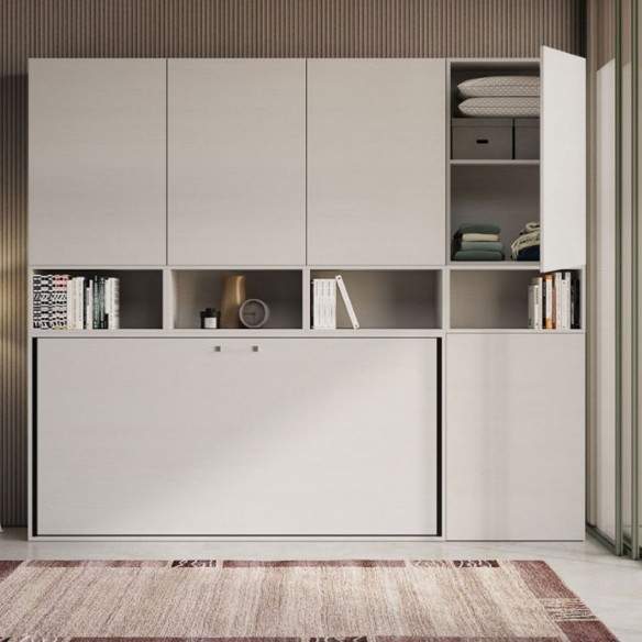 Grazie alla sua struttura compatta e intelligente, Kando C integra un comodo letto singolo a scomparsa all’interno di una libreria-armadio multifunzionale, permettendo di sfruttare al meglio ogni centimetro disponibile. Il mobile è progettato per offrire ampia capacità contenitiva, perfetta per mantenere sempre in ordine l’ambiente.