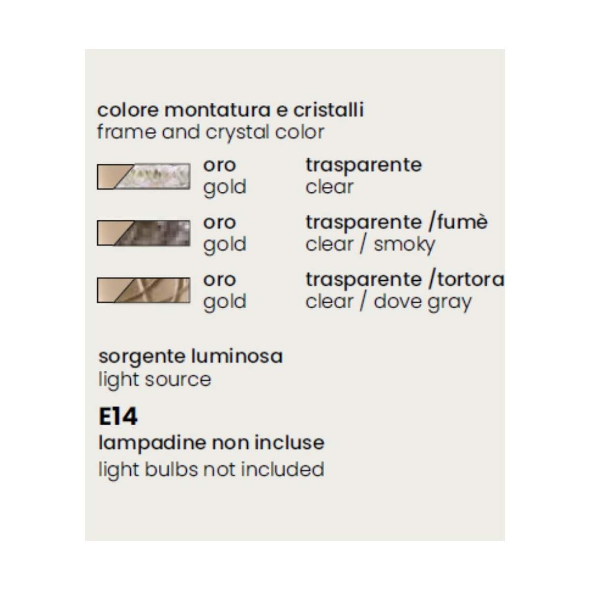 Lumetto OPERA in vetro lavorato a mano, con dettagli in cristallo ottico. Finiture in metallo dorato.
