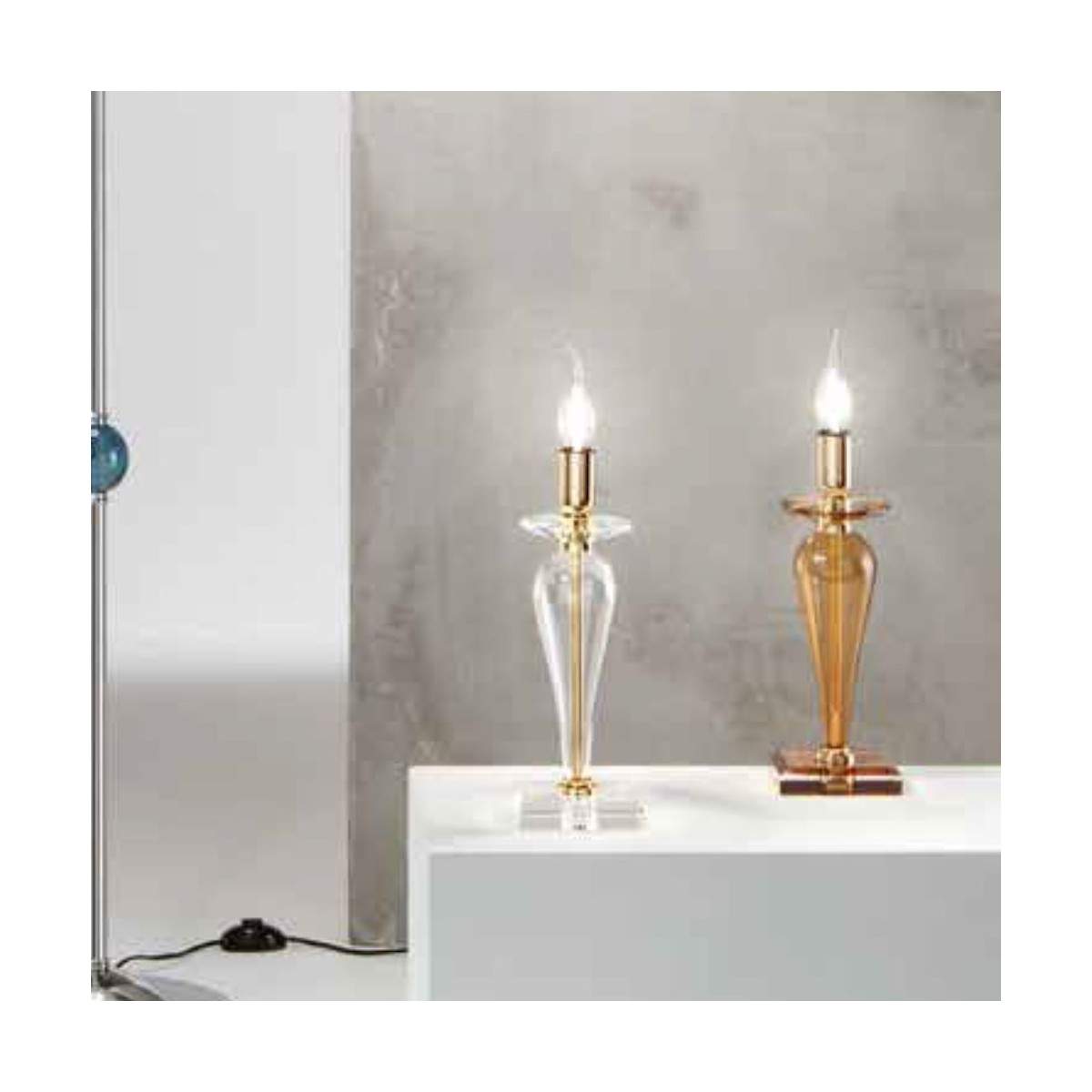 Il lumetto Paganini racchiude in sé tutta l'eleganza della collezione da cui prende il nome, esprimendo in forma compatta il fascino del vetro lavorato a mano. Un complemento ideale per valorizzare comodini, consolle o angoli lettura con un tocco sofisticato, senza rinunciare alla funzionalità.