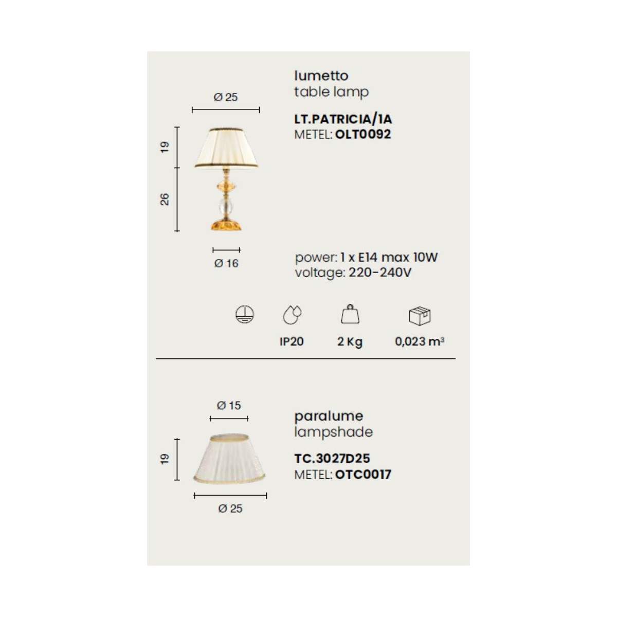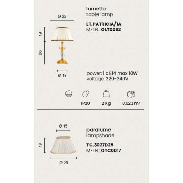 Il lumetto PATRICIA è una piccola opera d’arte luminosa, pensata per impreziosire comodini, consolle o angoli lettura con un’eleganza senza tempo. Realizzato in vetro e cristallo ambra, con una preziosa finitura oro, conquista al primo sguardo grazie ai suoi paralumi in organza e pongè, che diffondono una luce soffusa e avvolgente, perfetta per creare un’atmosfera calda e rilassante.