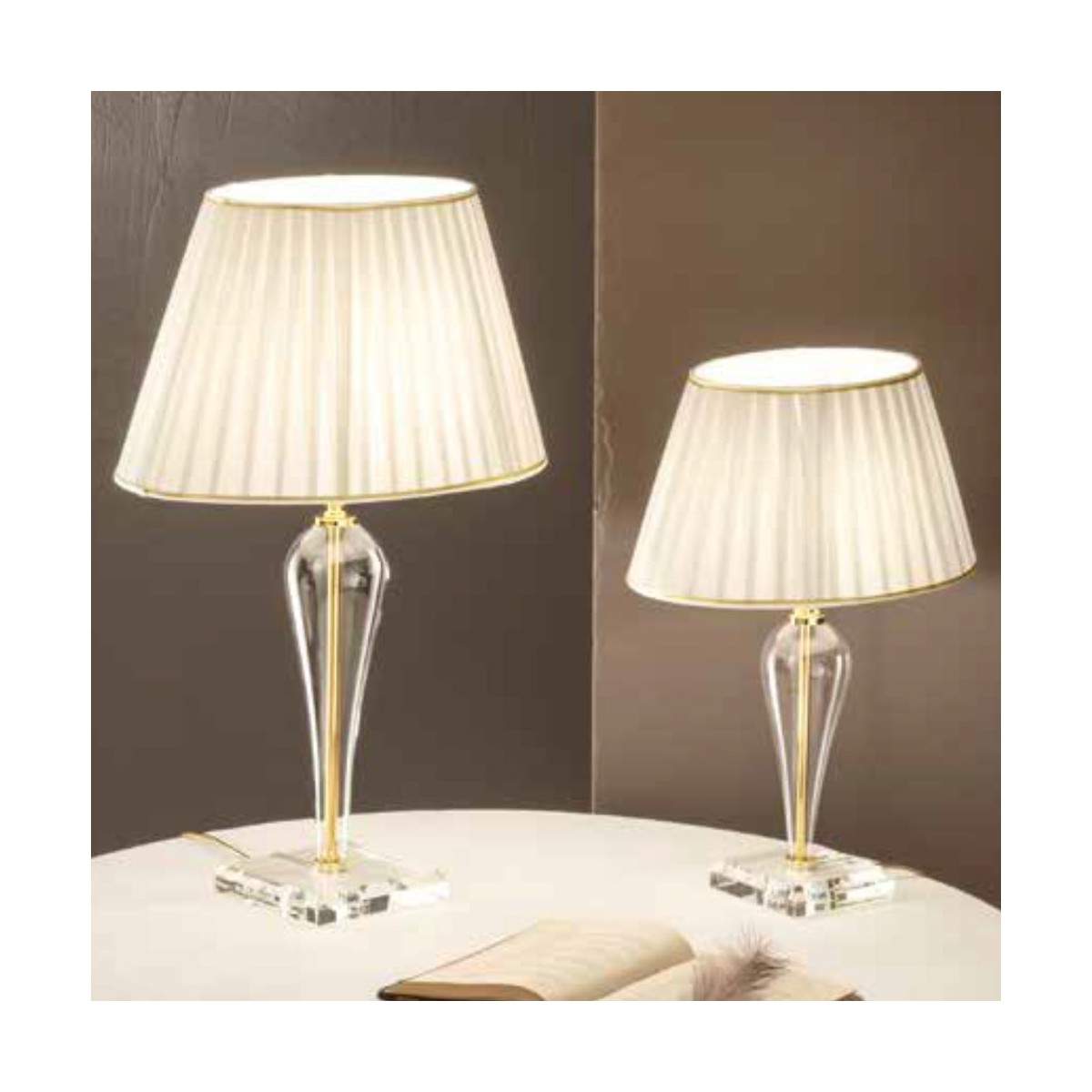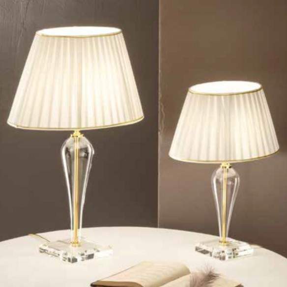 Lumetto RAVEL in vetro lavorato a mano con dettagli metalli oro e cromo.