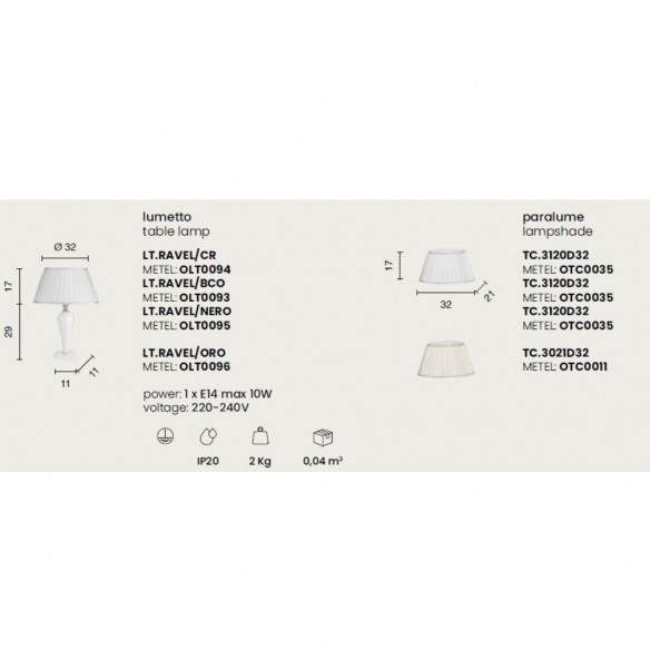 Compatibile con lampadine E14 o E27 (non incluse), RAVEL è la soluzione ideale per chi desidera una luce d’effetto, morbida e decorativa, con una personalità raffinata.