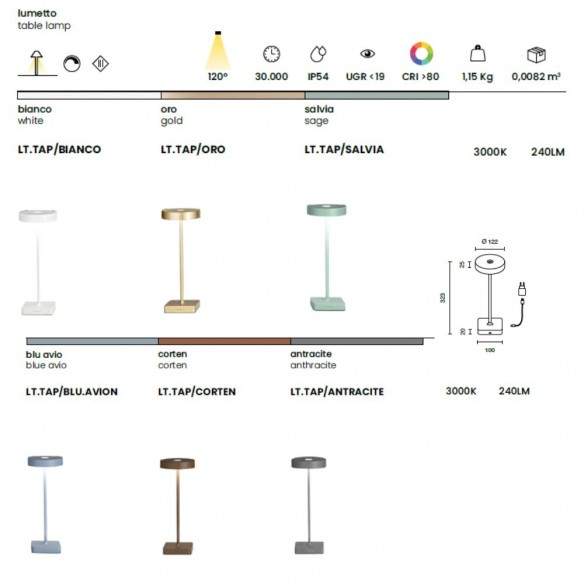 Grazie alla sorgente LED a basso consumo e a un’autonomia fino a 8 ore alla massima intensità, TAP si rivela la soluzione ideale per creare atmosfere accoglienti su tavoli da pranzo, comodini, scrivanie o terrazzi.