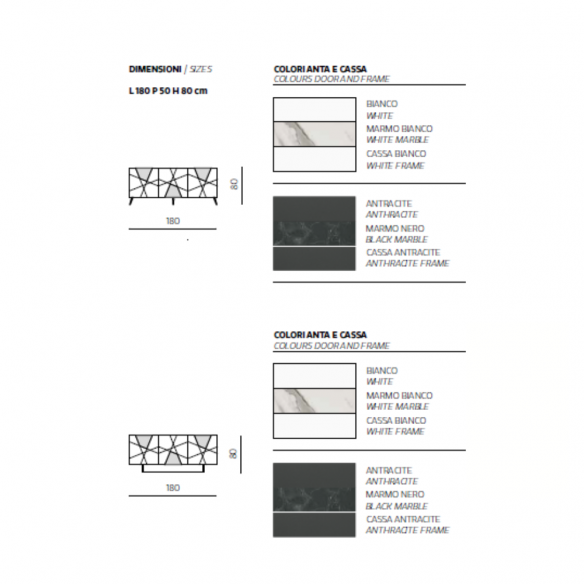 Altezza: 80 cm/ Larghezza: 180 cm/ Profondità: 50 cm