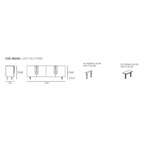 Perfetta per il soggiorno, la sala da pranzo o qualsiasi altro ambiente della casa, la Madia AURA si distingue per la sua versatilità e il suo design senza tempo. Con la possibilità di scegliere tra piedini e finiture eleganti, questa madia rappresenta una scelta ideale per chi desidera un arredo capace di combinare estetica e funzionalità.