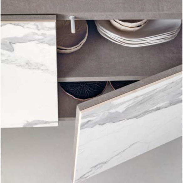 Realizzata con una solida struttura in laminato effetto legno o in una finitura laccata, DAFNE esprime un’estetica moderna e accattivante, mantenendo al contempo la robustezza necessaria per resistere al tempo. Le ante, vero punto focale del design, sono disponibili in gres o vetro con stampe decorative, materiali pregiati che aggiungono un tocco di lusso e ricercatezza. Ogni dettaglio è studiato per creare un perfetto equilibrio tra praticità e bellezza, rendendo questa madia non solo un elemento d’arredo, ma anche un protagonista della stanza.