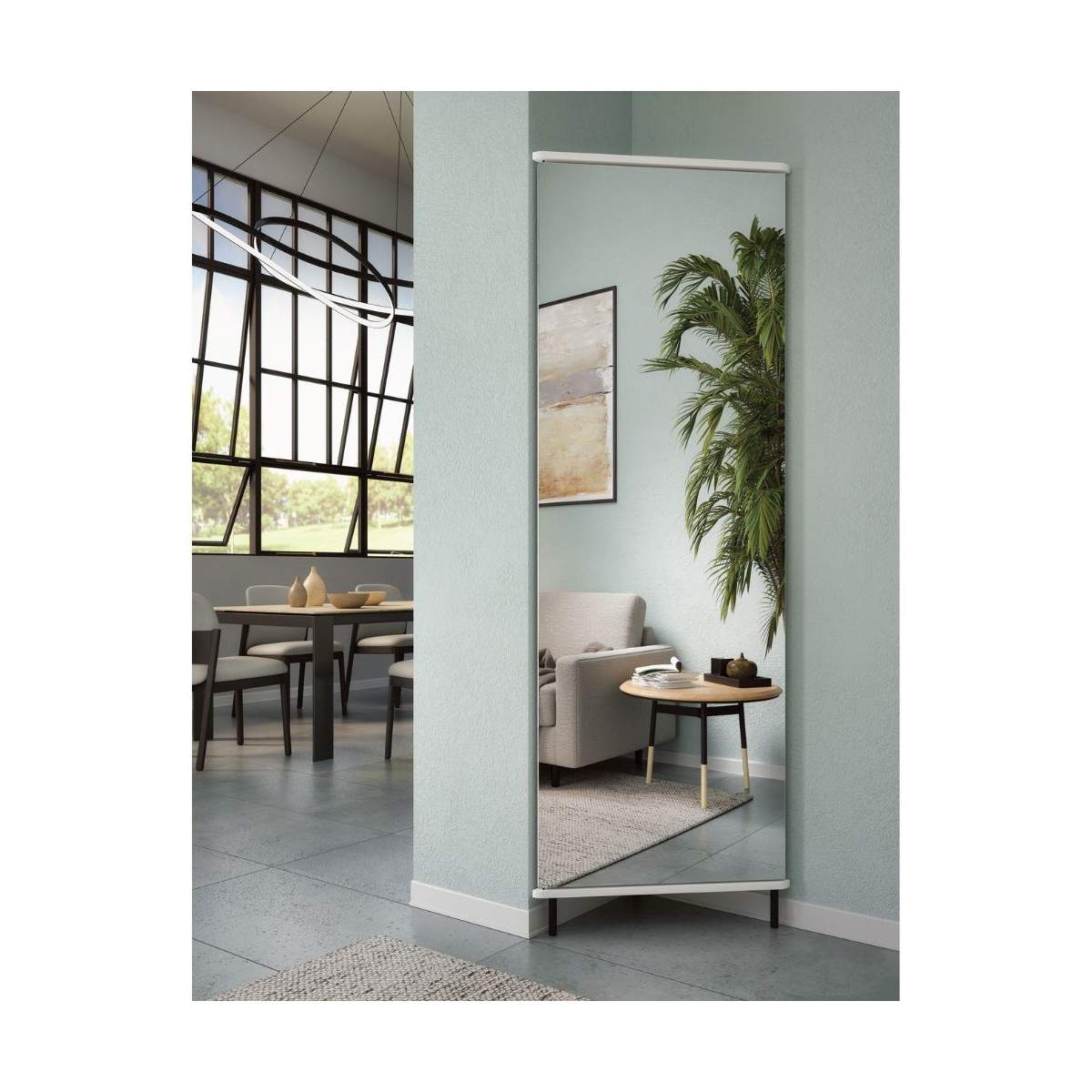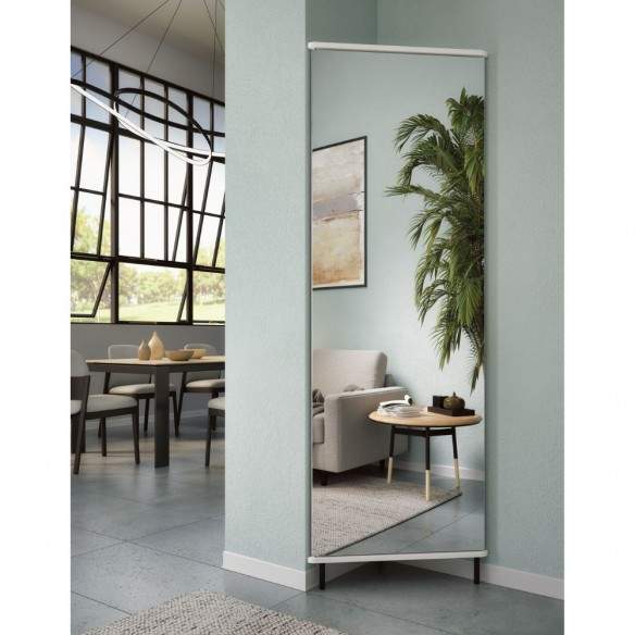 Mobile ad angolo PUNO E VIRGOLA ART.311 con montaggio SX o DX, in legno rivestito melaminico bianco con anta battente a specchio.