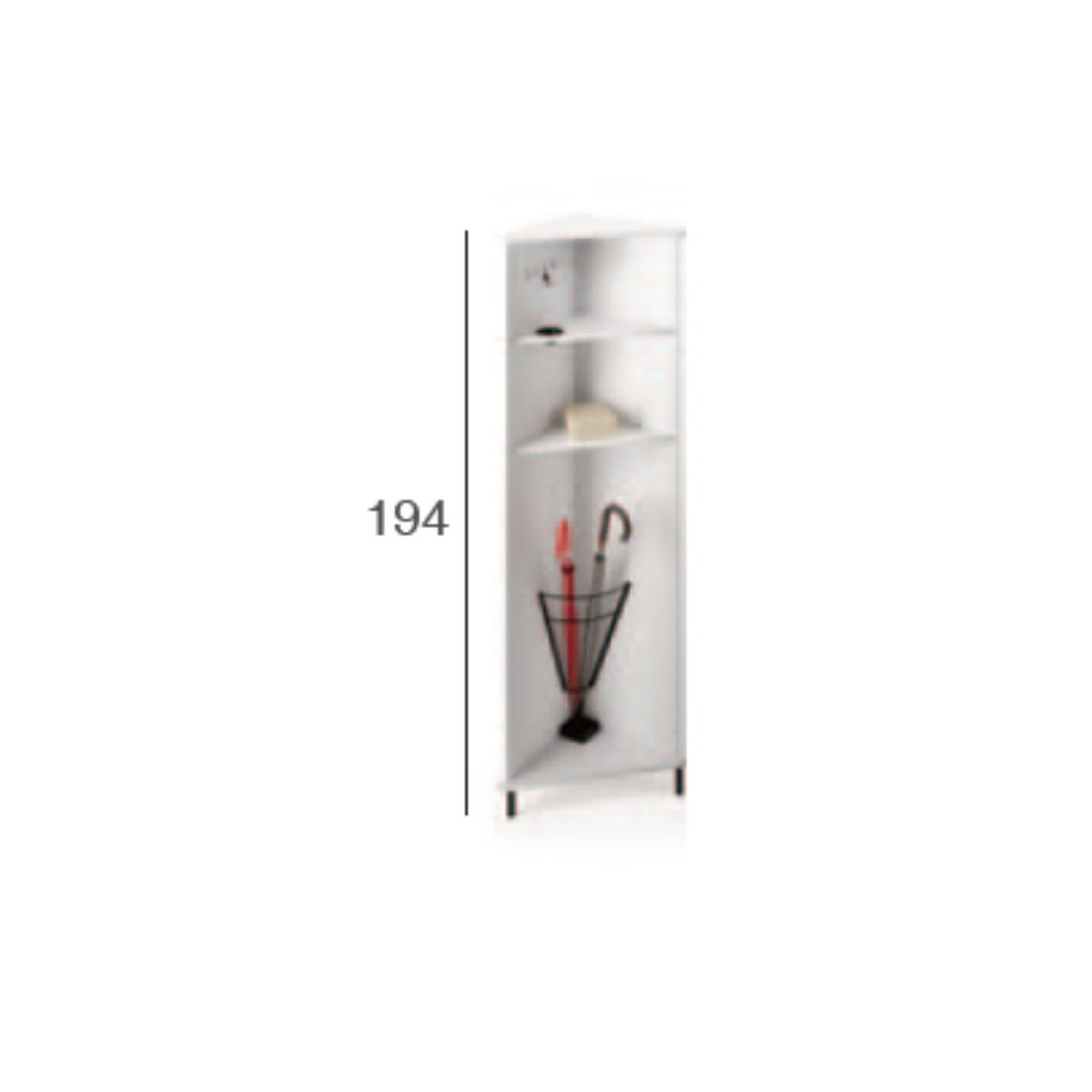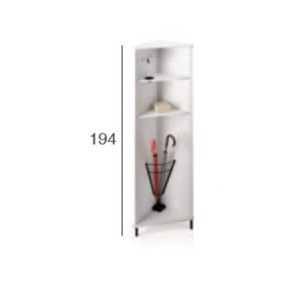 Con le sue dimensioni di 58×35 cm e un’altezza di 194 cm, il mobile ad angolo PUNTO E VIRGOLA ART.311 sfrutta lo sviluppo verticale riducendo l’ingombro a terra, risultando ideale anche per ingressi piccoli o spazi di passaggio.