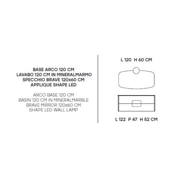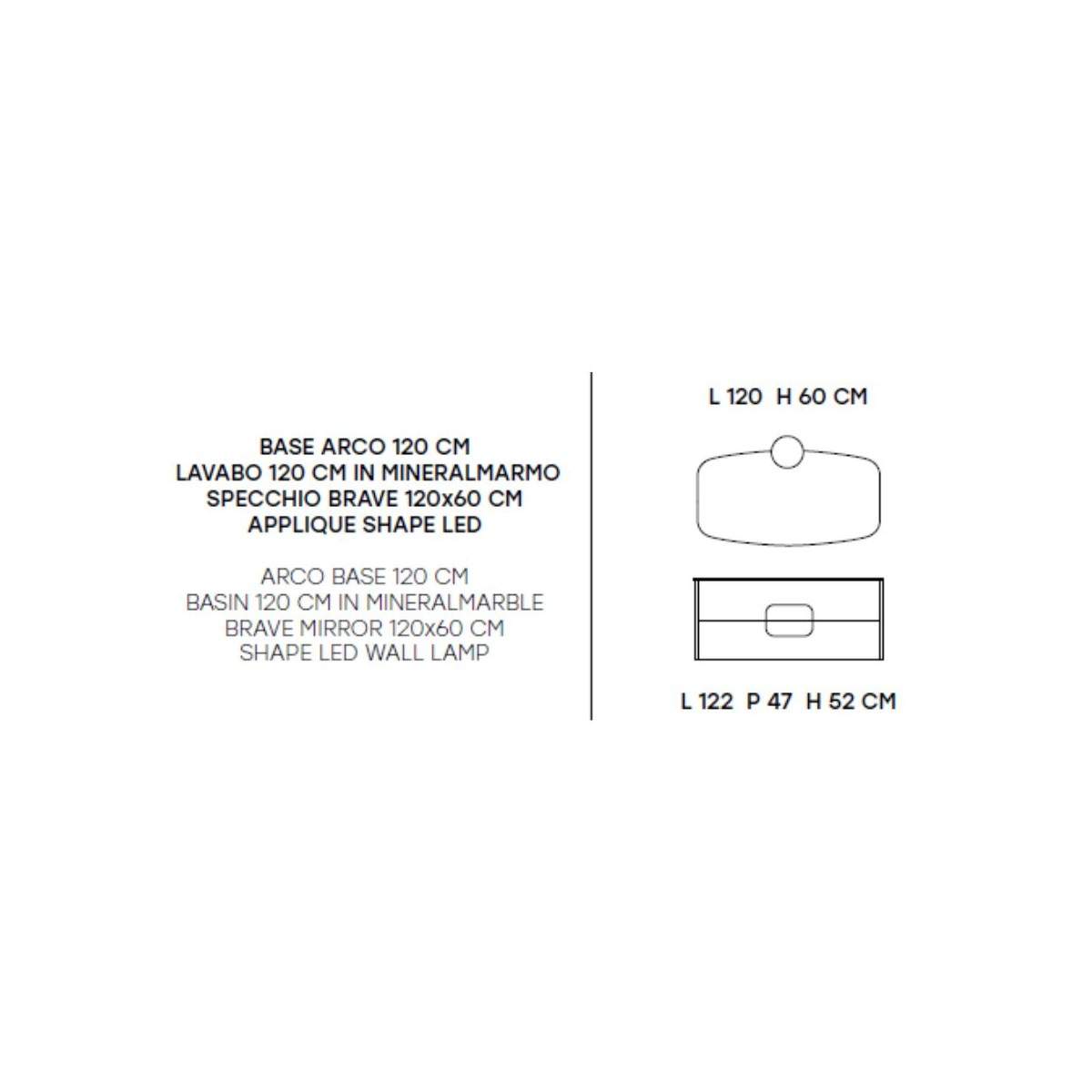 Il lavabo in mineralmarmo da 120 cm coniuga resistenza e raffinatezza, grazie a una superficie solida e facilmente igienizzabile, perfetta per l’uso quotidiano. La composizione è completata dallo specchio Brave 120x60 cm, elegante e proporzionato, accompagnato dall’applique Shape LED, che illumina in modo uniforme e valorizza l’intero arredo.
