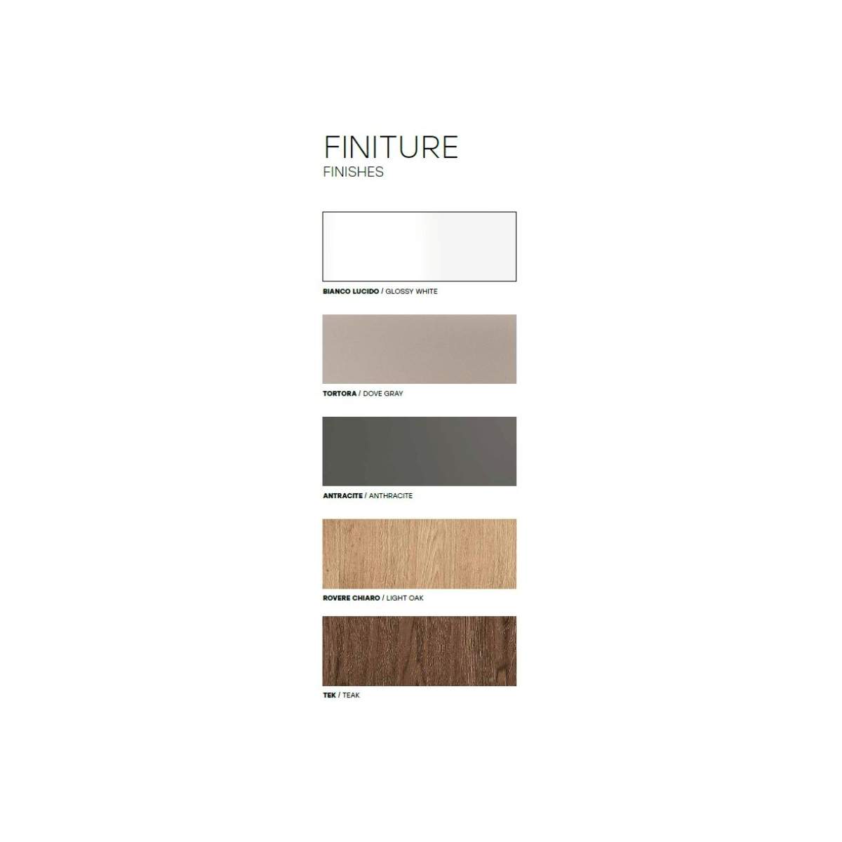 Realizzato in MDF con retro in melaminico e rivestito in foglia polimerica (PVC), garantisce resistenza all’umidità e facilità di pulizia, con uno stile moderno e raffinato.