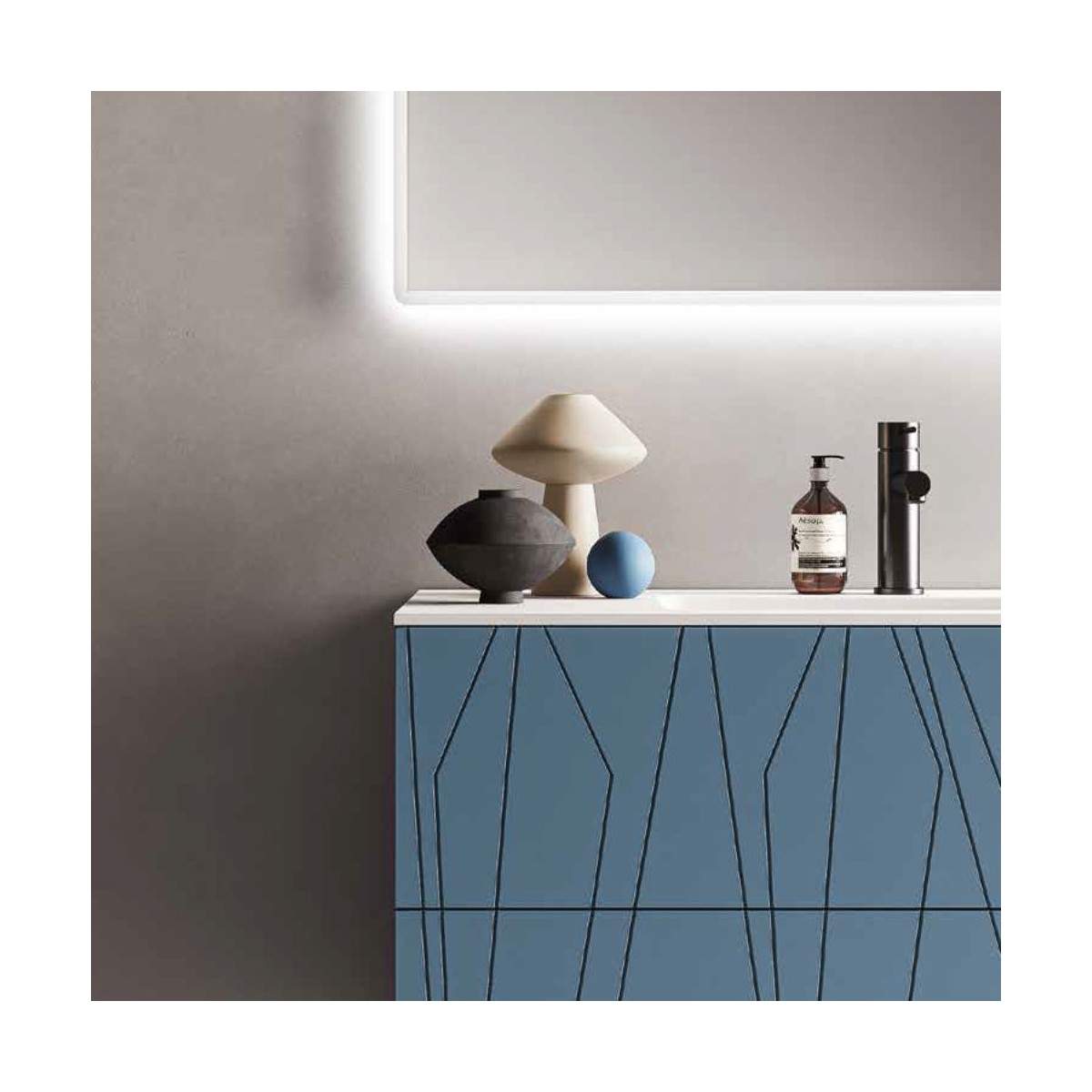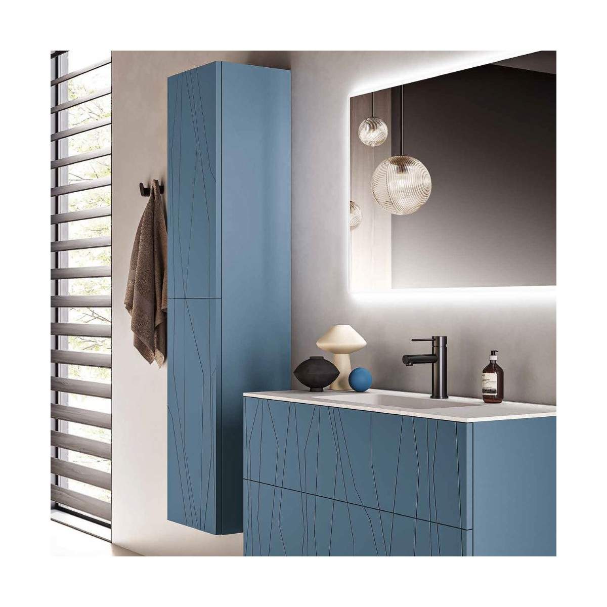 Il mobile bagno MINOS2 unisce estetica e praticità, distinguendosi per i suoi grafismi geometrici incisi, che aggiungono carattere e unicità alla composizione. Una scelta elegante e moderna per chi desidera un bagno dal design ricercato senza rinunciare alla funzionalità quotidiana.
