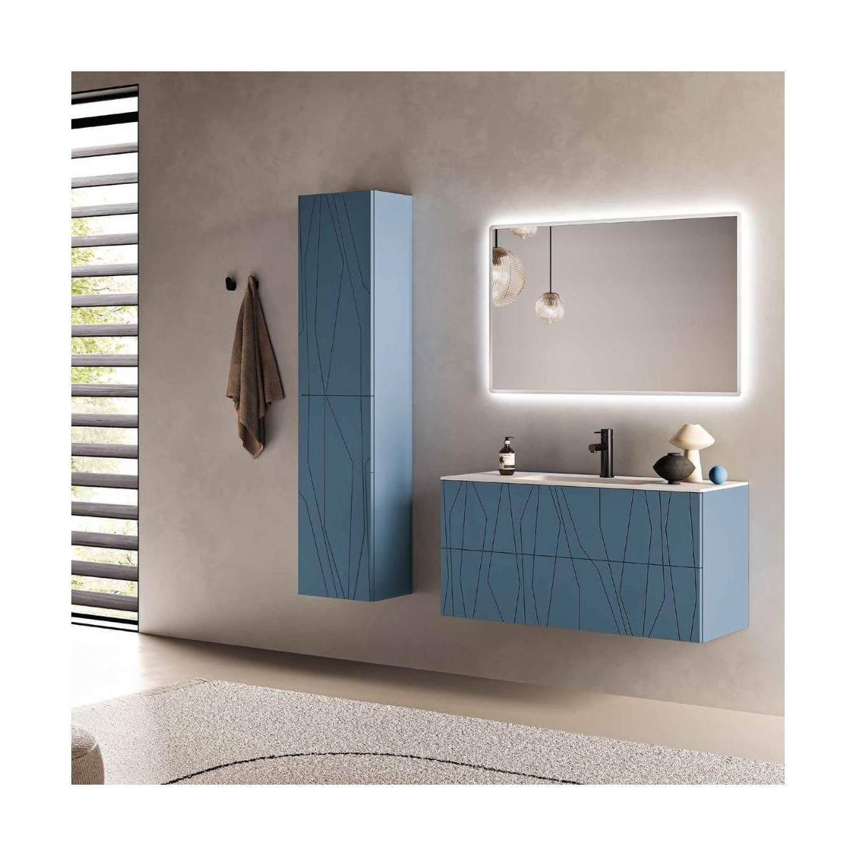 Mobile bagno MINOS2 100 CM I suoi grafismi geometrici incisi aggiungono un tocco di carattere e unicità, creando un perfetto equilibrio tra design e funzionalità.