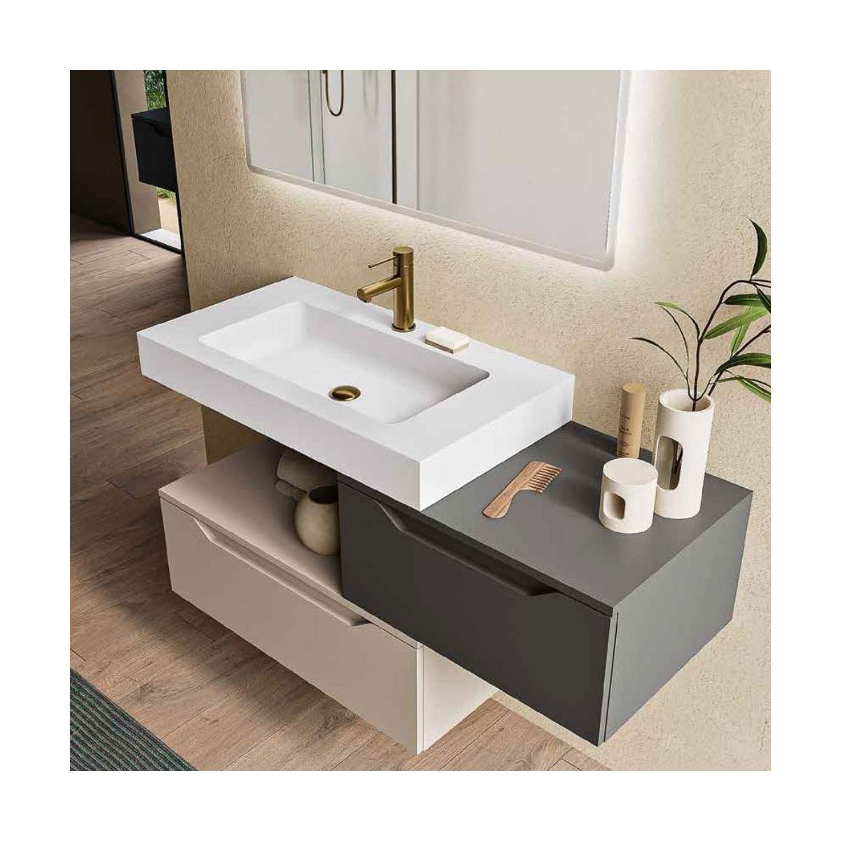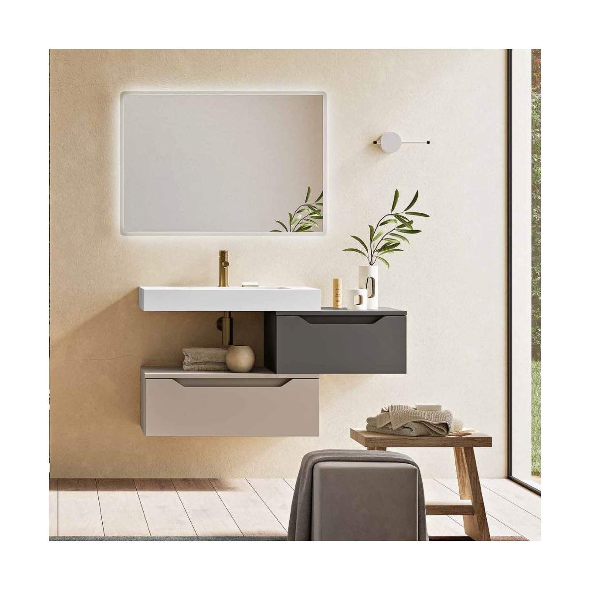 Mobile bagno MIXI composizione B – modularità e luce per un design essenziale