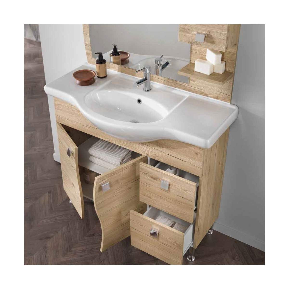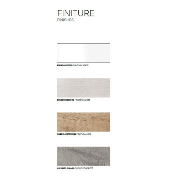 Disponibile nelle varianti Bianco lucido, Bianco nordico, Quercia naturale e Cemento chiaro, questo mobile bagno si adatta facilmente a qualsiasi stile, dal moderno al classico rivisitato.