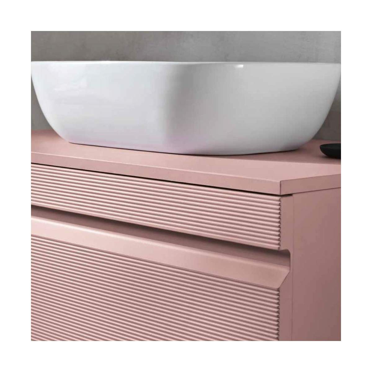 Mobile bagno RIO6 100 CM basi in MDF rivestito in materiale polimerico con frontali cannettati.