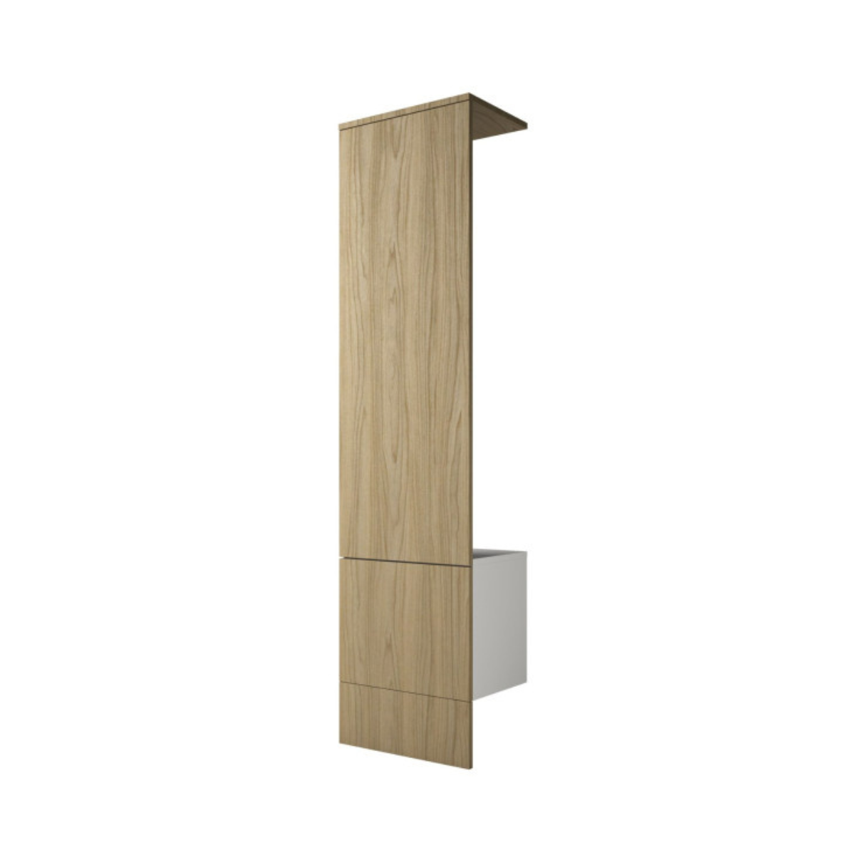 La struttura interna e la parte posteriore del pannello sono sempre realizzate in finitura bianca, garantendo uniformità e pulizia estetica anche nei dettagli meno visibili. Perfetto da solo o integrato con armadietti, boiserie e mensole appendiabiti, H02 si adatta con naturalezza a ogni ambiente domestico.
