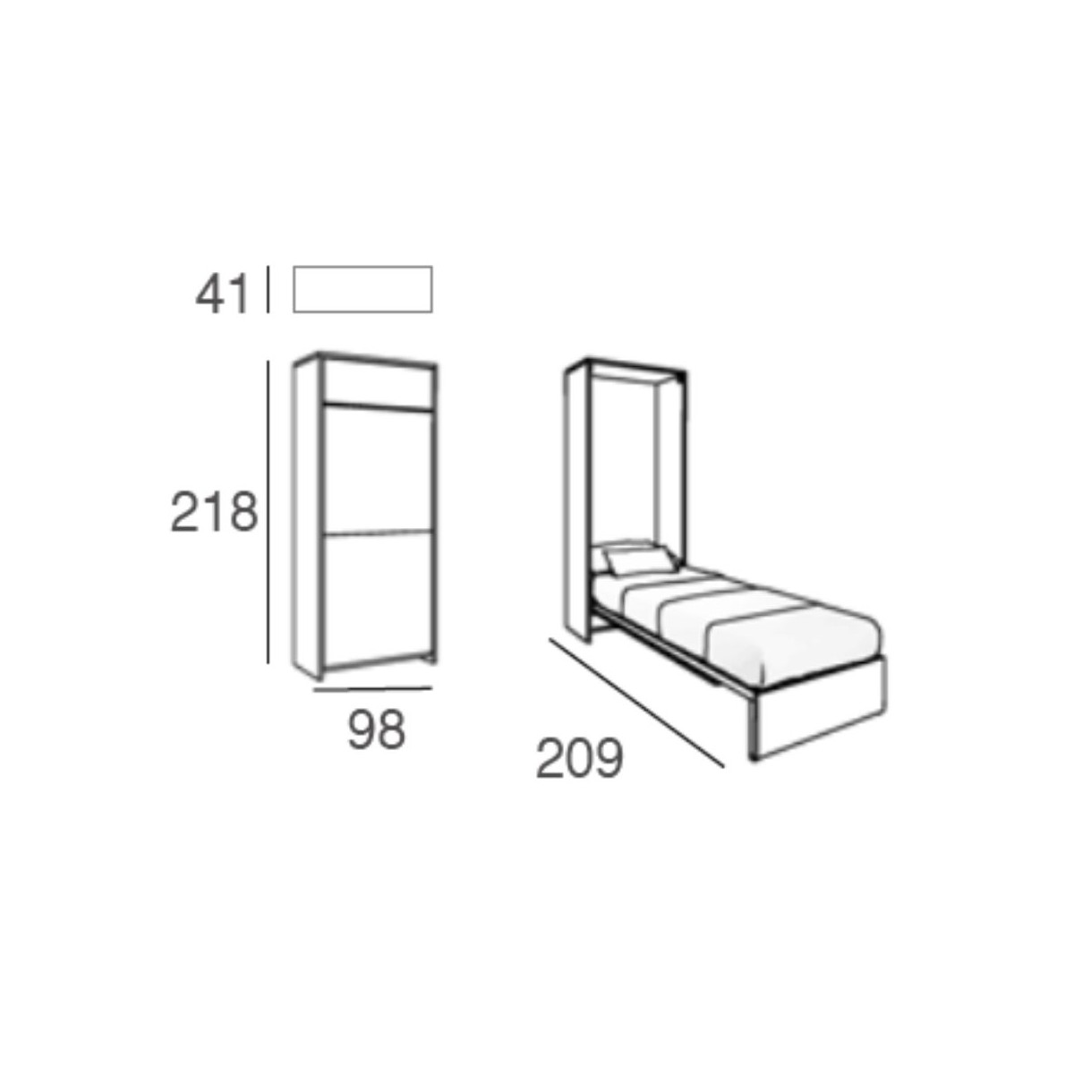 Il vero punto di forza è la sua compattezza: da chiuso ha una profondità di soli 41 cm, risultando estremamente discreto e poco ingombrante. Una volta aperto raggiunge 209 cm di profondità, offrendo un letto singolo confortevole e stabile. Le dimensioni complessive sono 98 cm di larghezza e 219 cm di altezza.