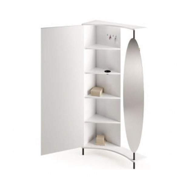 Mobile per ingresso PUNTO E VIRGOLA ART.303 A - F/A in legno rivestito melaminico con anta battente in legno, da accessoriare , come nelle versioni A/B/C/D/E a vostro piacimento e specchiera girevole con due portabiti, montaggio da scegliere lato destro o sinistro.