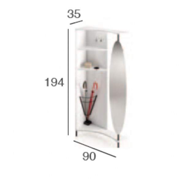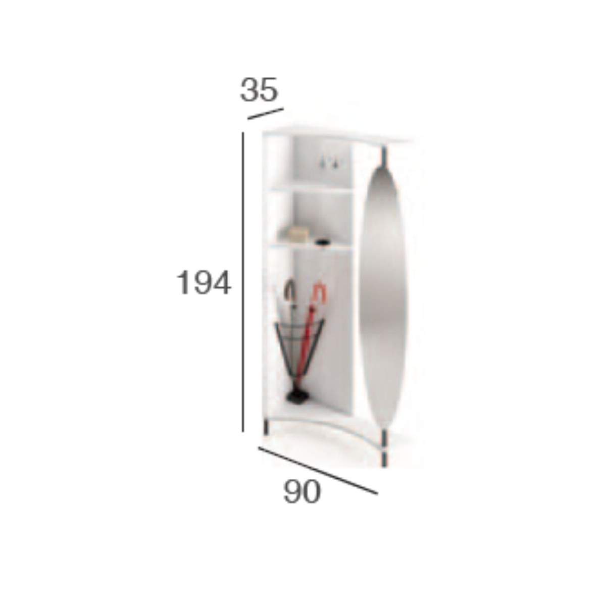 Con le sue dimensioni di 90×35 cm e altezza di 194 cm, il PUNTO E VIRGOLA ART.303 B / F/B sfrutta lo sviluppo verticale per offrire una grande capacità contenitiva, risultando ideale anche per ingressi di dimensioni contenute.