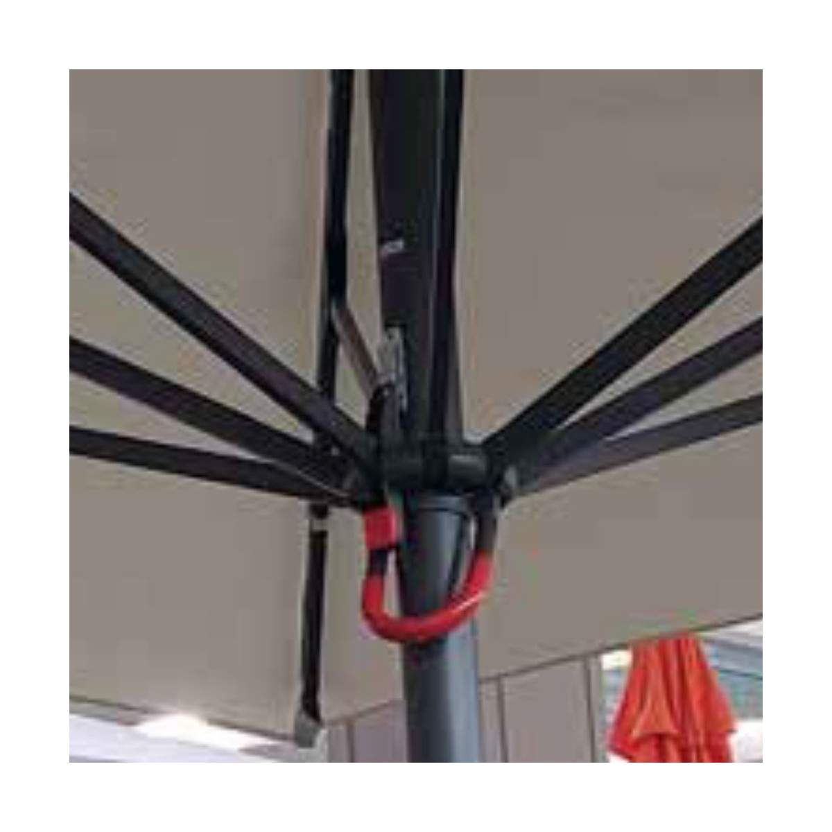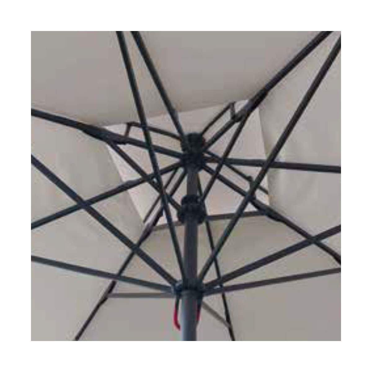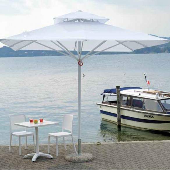 La struttura solida è caratterizzata da un palo centrale da 60 mm, progettato per offrire massima stabilità e durata. Grazie al suo sistema di apertura telescopica, con un’altezza di 300 cm da aperto e 360 cm da chiuso, è possibile richiuderlo senza dover spostare tavoli e sedie sottostanti, rendendolo ideale per l’utilizzo in spazi contract. Il sistema a doppio ragno telescopico consente una chiusura pratica e intuitiva, ottimizzando lo spazio senza sacrificare la funzionalità.