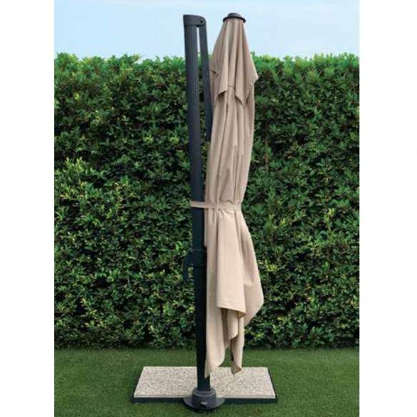 Ombrellone TREMITI con struttura alluminio verniciato antracite e dotato di sistema di regolazione dell'inclinazione con telo ecrù.