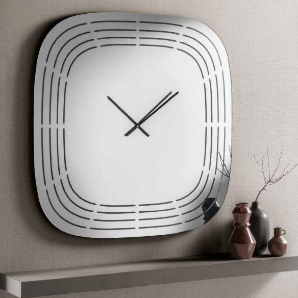 Orologio HORIZON a parete in vetro specchiato con incisione a laser