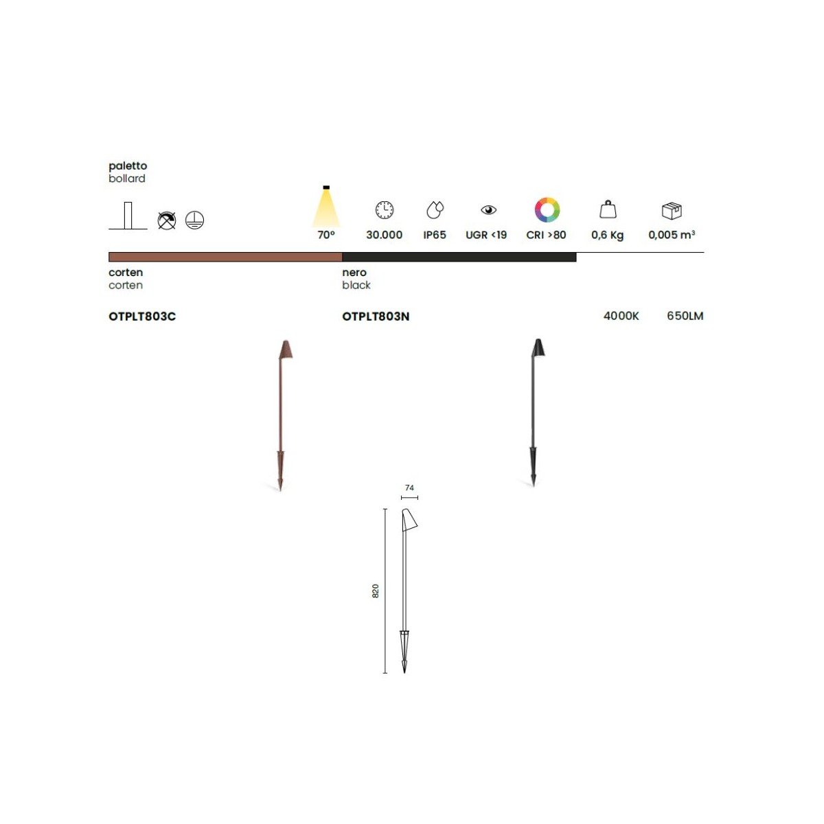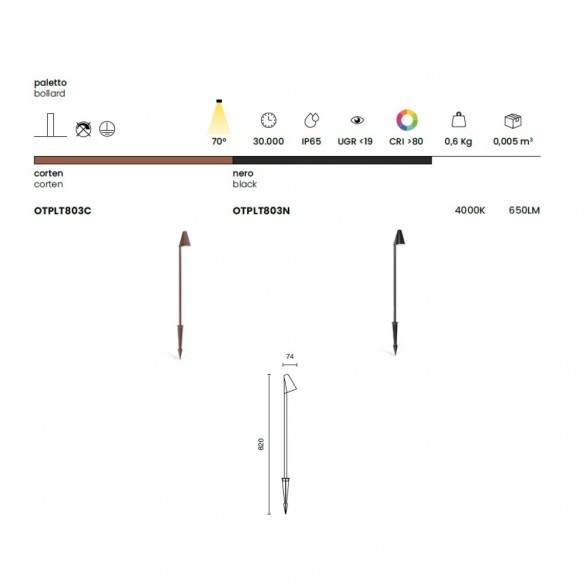 Grazie all’installazione a picchetto, risulta semplice e veloce da posizionare, offrendo grande flessibilità per personalizzare l’illuminazione degli spazi esterni. Disponibile nelle finiture corten e nero, si adatta perfettamente a diversi stili architettonici, dal classico al contemporaneo.