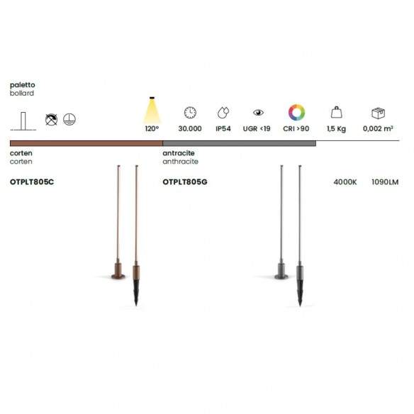Pensato per la massima praticità, include due sistemi di ancoraggio: con picchetto per un’installazione rapida a terra o con base piatta per un fissaggio stabile su superfici dure. Disponibile nelle eleganti finiture corten e nero, si adatta con facilità a contesti moderni o tradizionali.