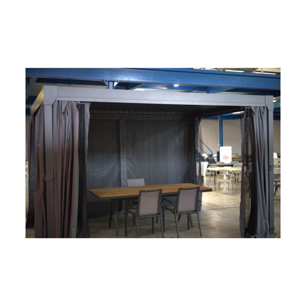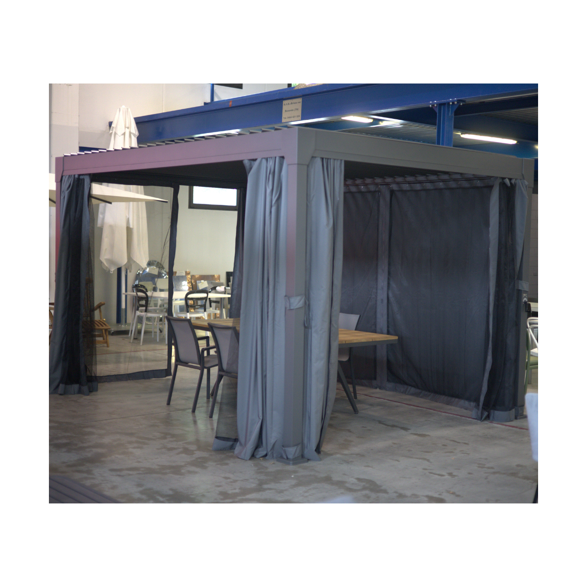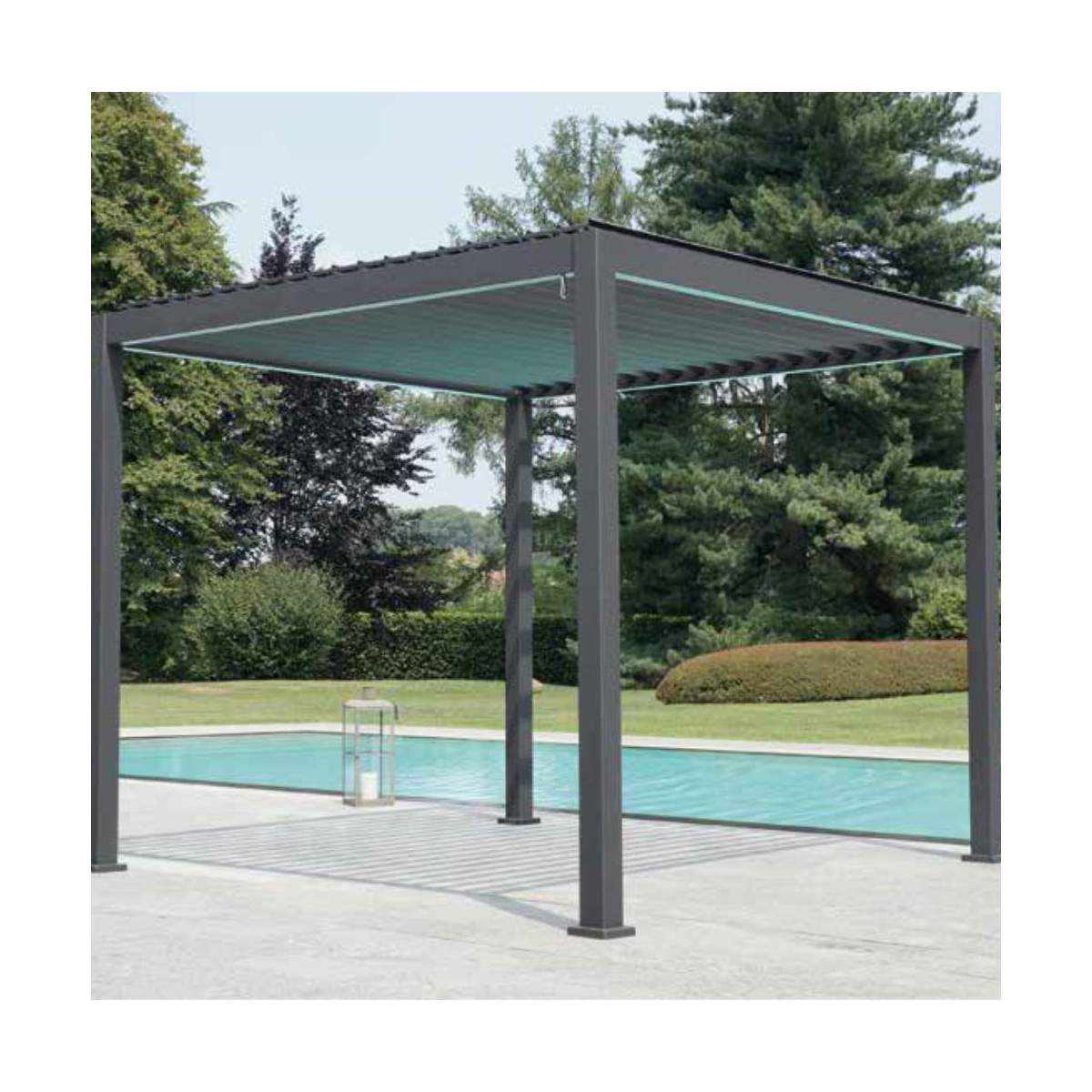 Grazie alla sua struttura in alluminio verniciato antracite, si distingue per la sua elevata qualità costruttiva, garantendo resistenza alle intemperie e una lunga durata nel tempo senza necessità di manutenzione.