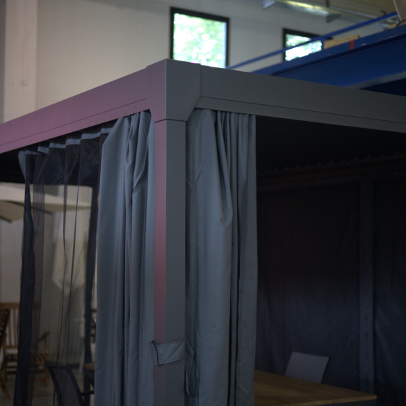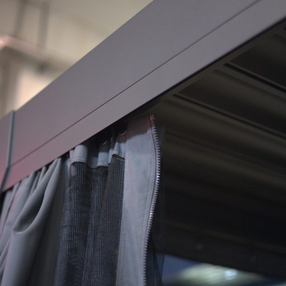 Per chi desidera un’esperienza ancora più esclusiva, è possibile completare la struttura con il kit di tende oscuranti e zanzariere, perfetto per creare un ambiente più riservato, riparato dal sole e protetto dagli insetti, così da godersi al meglio ogni momento all'aperto.