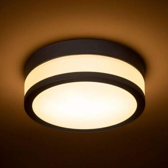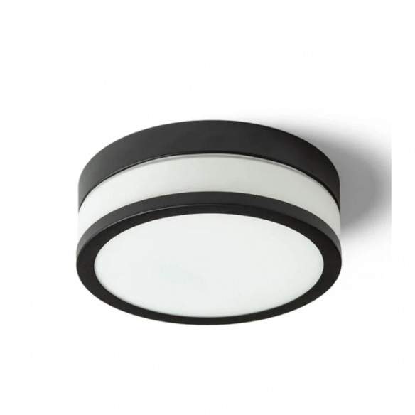 Plafoniera CIRA con il vetro piatto opalino in montatura metallica. Adatta per ambienti umidi