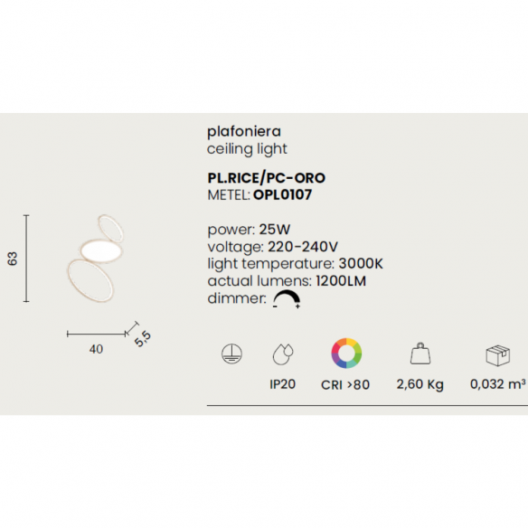 Con il suo design moderno e raffinato, la plafoniera RICE è pensata per chi cerca una luce d’effetto anche senza sospensioni. La struttura in metallo color oro dona un tocco di lusso discreto, mentre il diffusore in acrilico e silicone offre una luce uniforme, morbida e sempre gradevole.