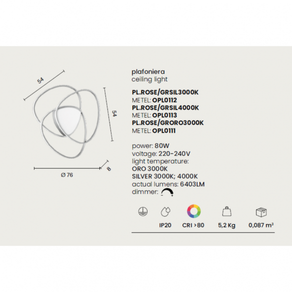 Un gioco di luci, forme morbide e riflessi metallici: la plafoniera ROSE di Onda Luce dona un tocco sofisticato a ogni ambiente, fondendo estetica e tecnologia in un equilibrio perfetto. Realizzata con una struttura in metallo e un diffusore in acrilico e silicone, questa plafoniera LED dimmerabile è disponibile in due finiture raffinate: silver e gold, per adattarsi a stili sia moderni che classici.