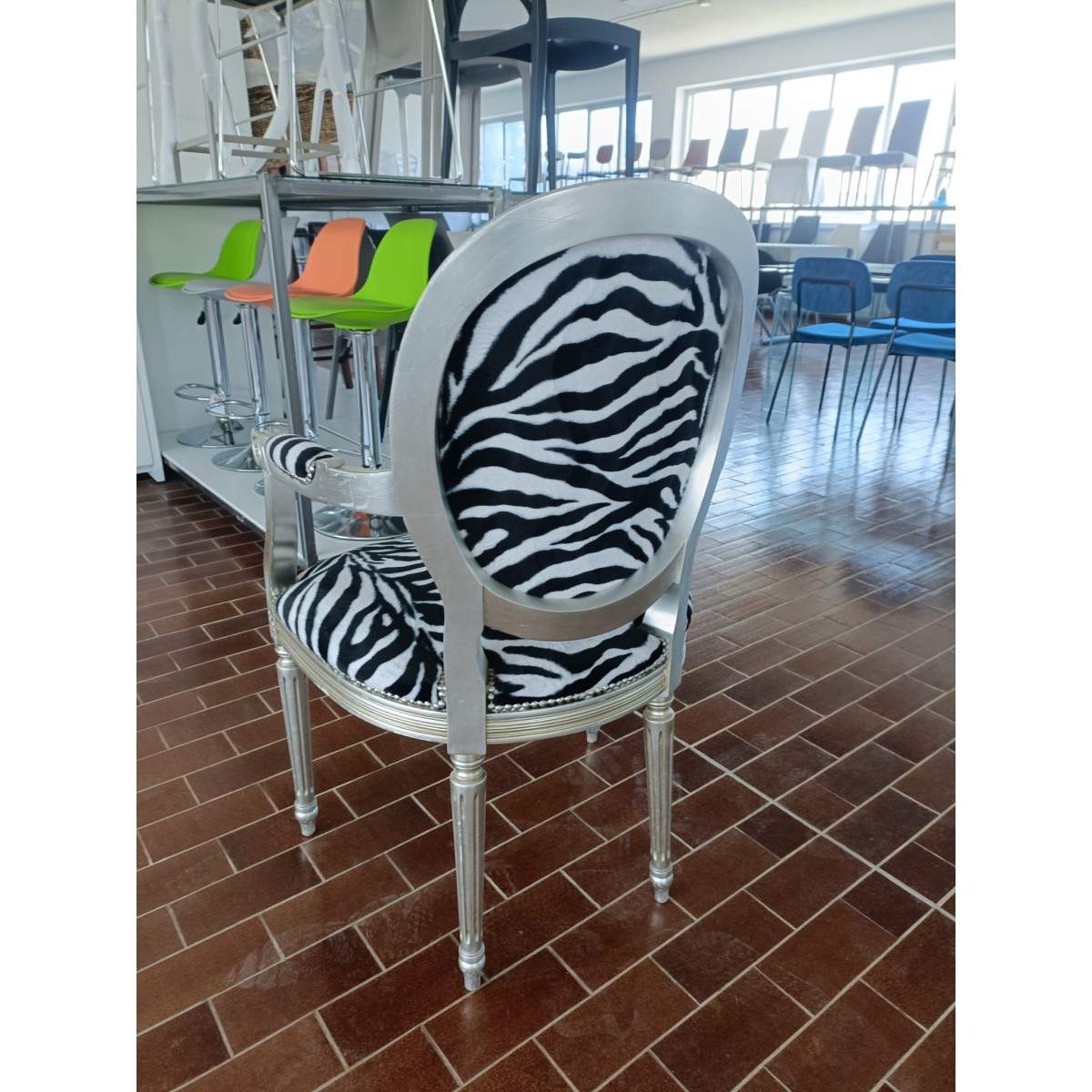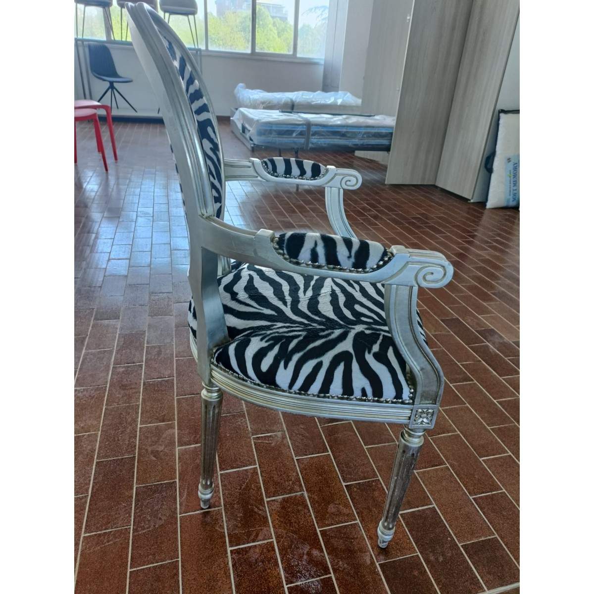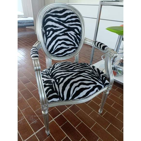 SUPER OFFERTA SPECIALE X POLTRONA ARTIGIANALE REALIZZATA A MANO MODELLO REGINA CON RIVESTIMENTO EFFETTO ZEBRA E STRUTTURA RIVESTITA IN FOGLIA D'ARGENTO