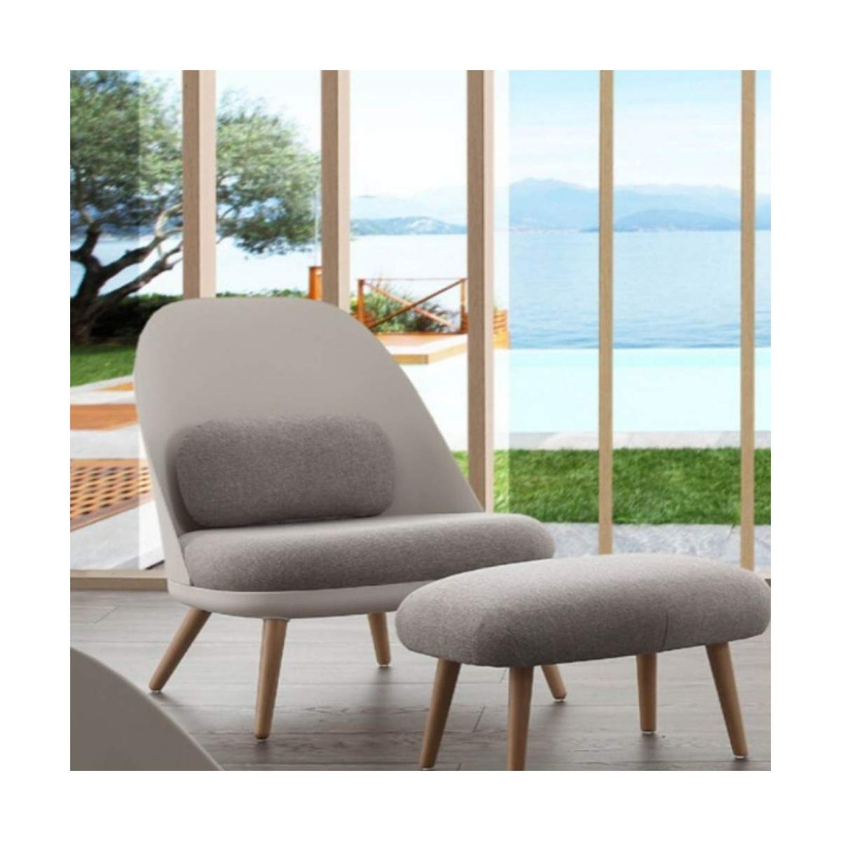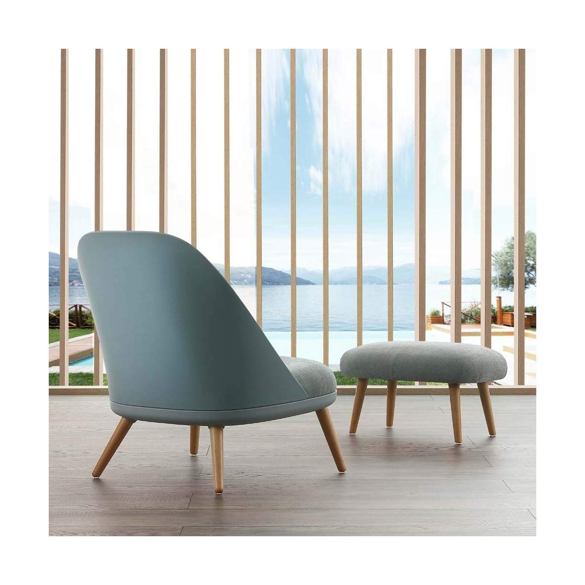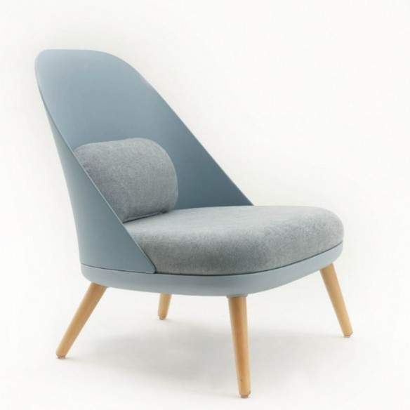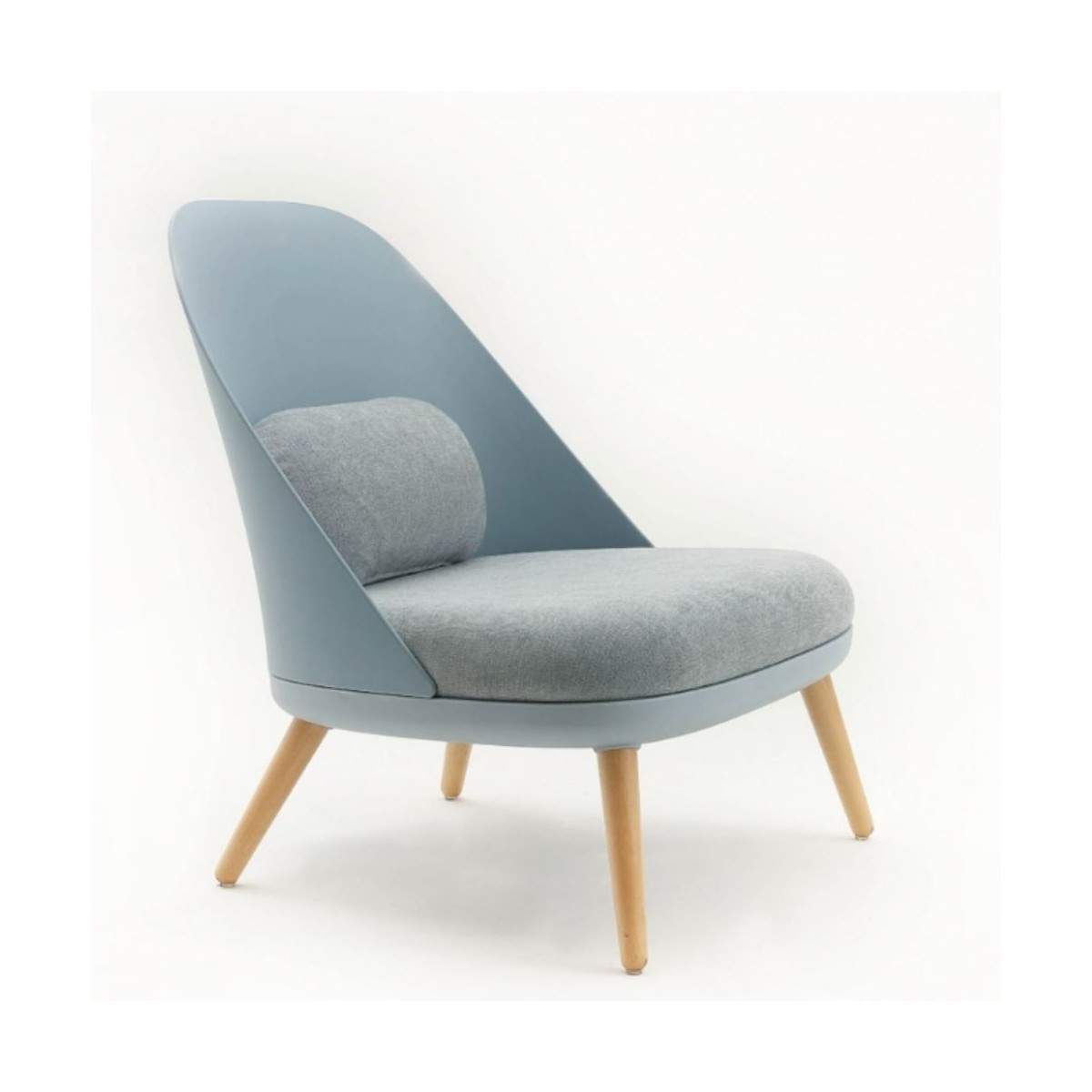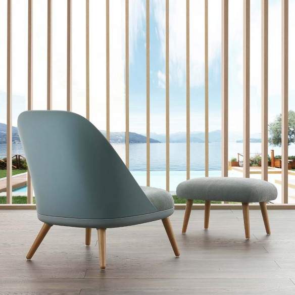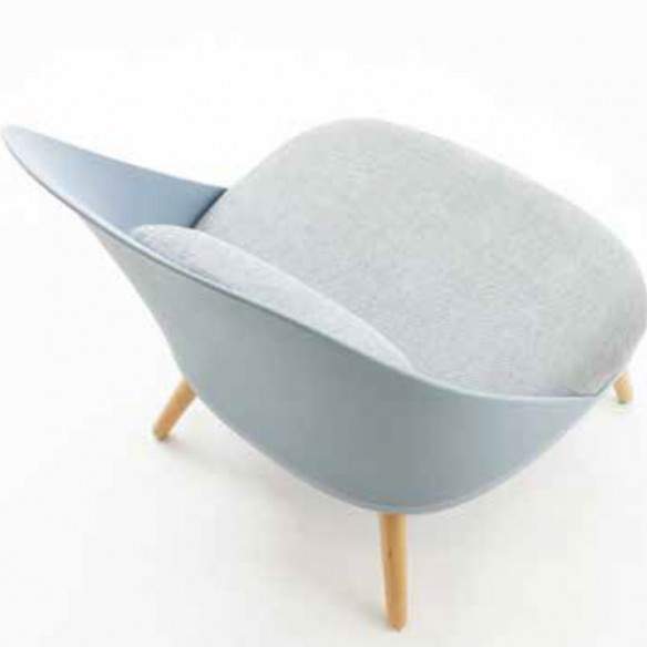 Poltrona comoda in polipropilene e gambe in massello di faggio tinto naturale