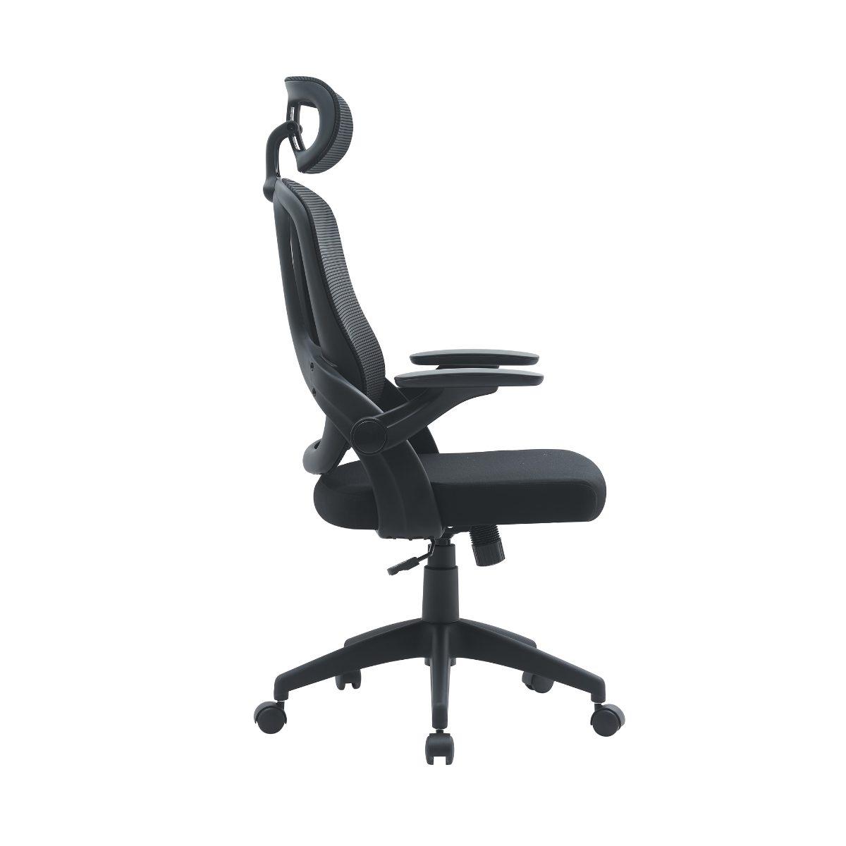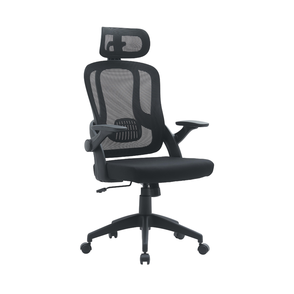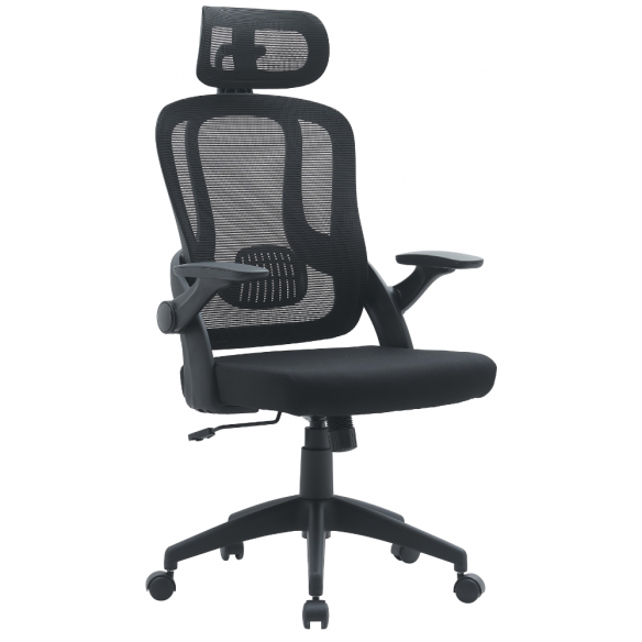 Lo schienale e il poggiatesta sono realizzati in plastica (PP) e rivestiti con tessuto a rete poliestere 100%, assicurando un'ottima ventilazione anche durante le giornate più calde. Il supporto lombare integrato aiuta a mantenere una postura corretta, riducendo l’affaticamento alla schiena.