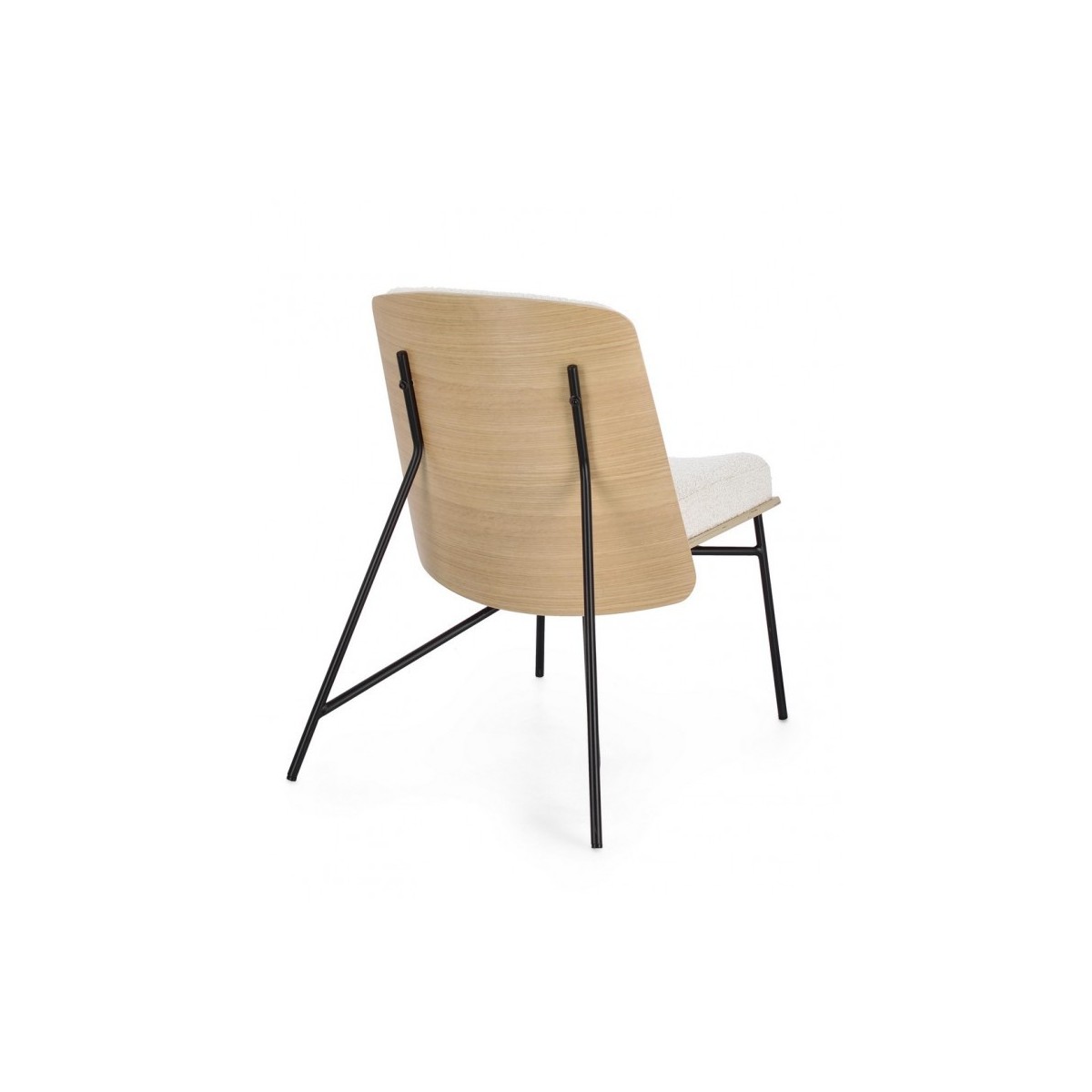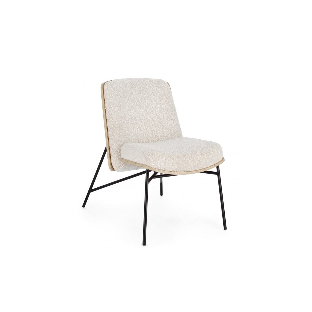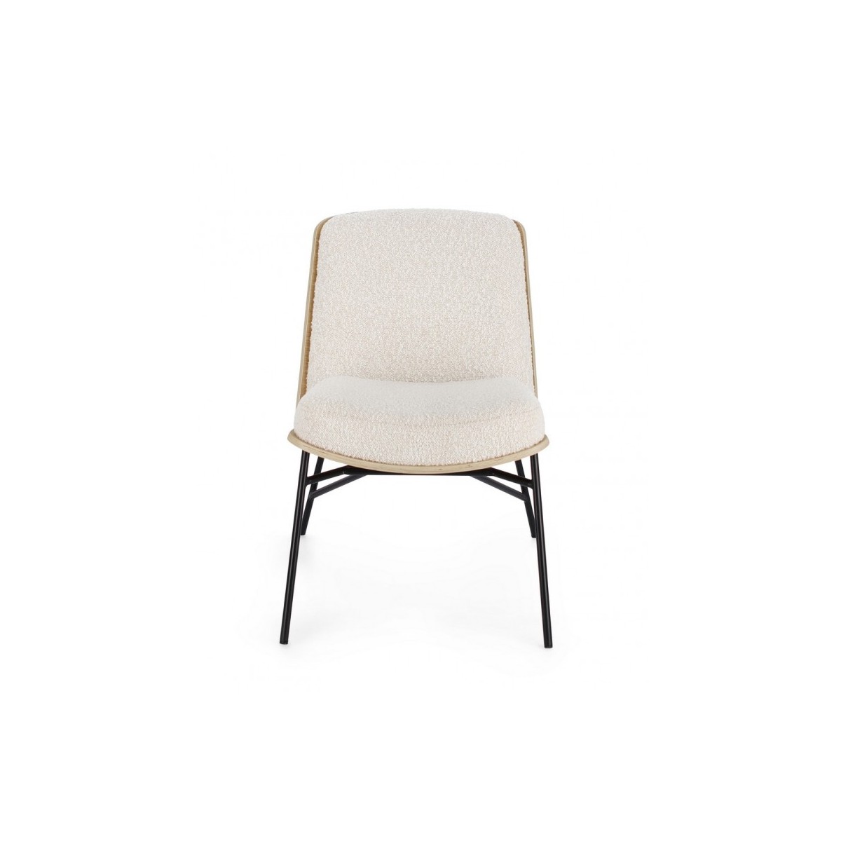 STRUTTURA IN COMPENSATO. GAMBE IN ACCIAIO VERNICIATO A POLVERE. IMBOTTITURA IN SCHIUMA POLIURETANICA. RIVESTIMENTO IN 95% POLIESTERE 5% ACRILICO EFFETTO BOUCLE' . GAMBE DA ASSEMBLARE.